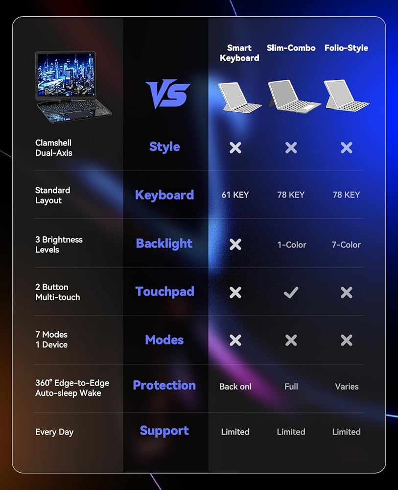 Transform your iPad Air or iPad Pro into a versatile workstation with this sophisticated keyboard case. Designed specifically for 11-inch iPad Pro (M4, 2024); Model:A2836,A2837,A3006, this case offers both protection and functionality. The detachable keyboard design provides flexibility - use it when you need to type and remove it when you want a lighter tablet experience. The folio cover features multiple viewing angles for comfortable typing and viewing, while the built-in Apple Pencil holder keeps your stylus secure and accessible. Finished in an elegant blue shade, the case maintains a slim profile while protecting your device from everyday bumps and scratches. The precise cutouts ensure full access to all ports and features, and the protective case doubles as a convenient stand for watching videos or browsing. Whether you're working, studying, or entertaining yourself, this keyboard case enhances your iPad experience with both style and practicality.