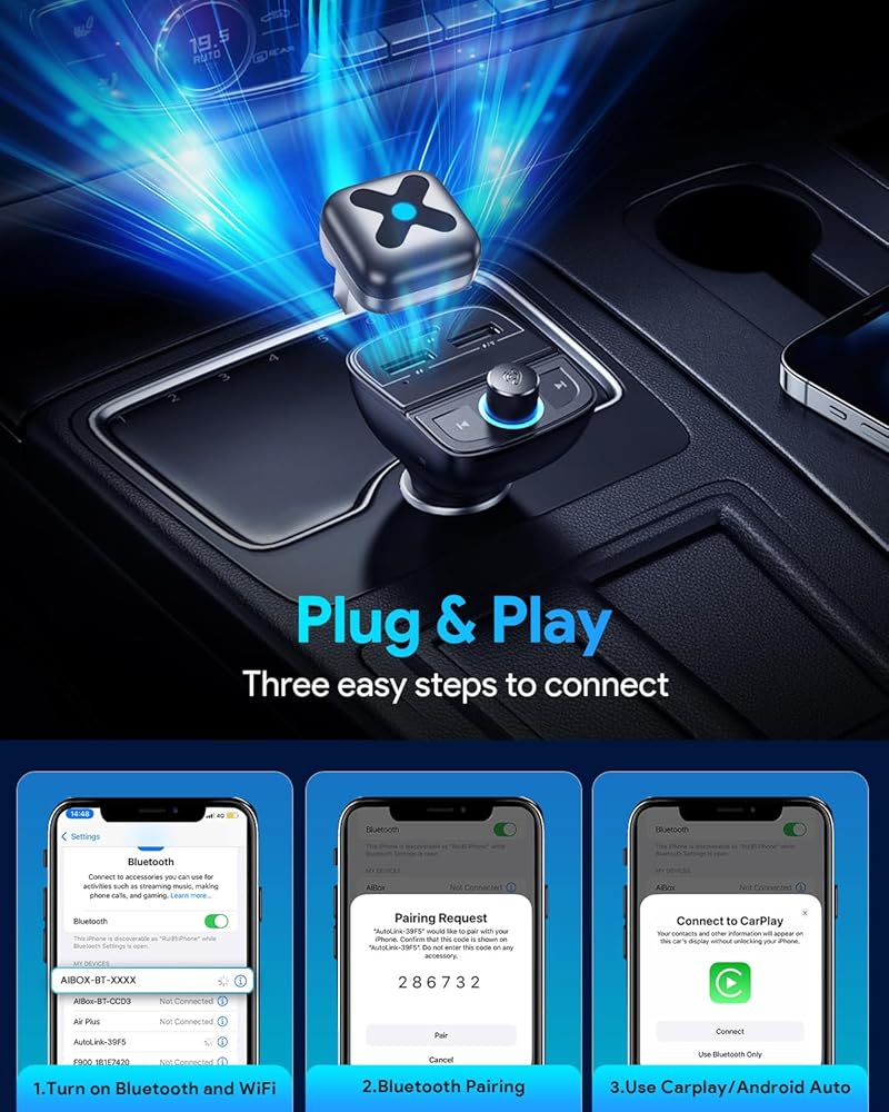 إعداد المرونة متعددة المنافذ وإعداد التوصيل والتشغيل: اختر من USB-C أو USB-A أو اتصال كابل الامتداد لتناسب منافذ USB مختلفة. لا يوجد إعداد معقد مطلوب - فقط قم بتوصيل المحول في منفذ سيارتك ، والاقتران بهاتفك عبر Bluetooth ، وابدأ في استخدام CarPlay/Android Auto على الفور. العملية بسيطة وسلسة لجميع المستخدمين.