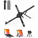 【Premium Aluminum Alloy – Durable & Heat-Dissipating】 Crafted from lightweight aluminum alloy for durability, stability, and effective heat dissipation. Silicone pads on edges prevent slips and protect your devices and desk surfaces. A stylish, small laptop stand solution for home, office, or travel.