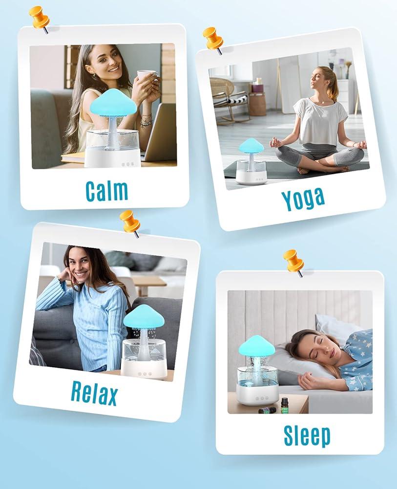 Soothe Your Mind and Body with the Sound of Rain: Our rain cloud humidifier cloud emits a gentle water drop sound that mimics the soothing sound of raindrops falling, creating a tranquil environment perfect for relax, study, or sleep or meditation.