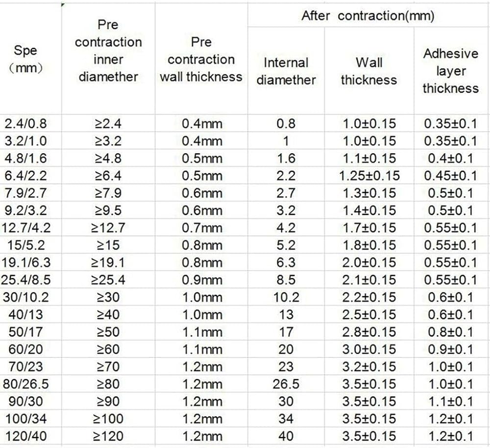 Warm notice:The Item No./diameter of heat shrinkable tubing is the inner diameter in the round state,not the width in the flat state.