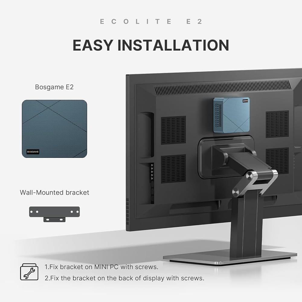 【Mini PC Ryzen 5 Equipped 16GB DDR4 RAM & 512GB SSD】Bosgame E2 Mini Computers is equipped 16GB memory, expandable up to 64GB. It includes a 512GB M.2 2280 PCIe SSD, with scalability up to 4TB storage.