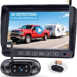 Wireless Backup Camera for Trailer - 7" 1080P RV Backup Camera with 4-Channel Split-Screen Monitor, AI Detection, Night Vision, Loud Beeps, Plug & Play, Compatible with Furrion Pre-Wired RVs