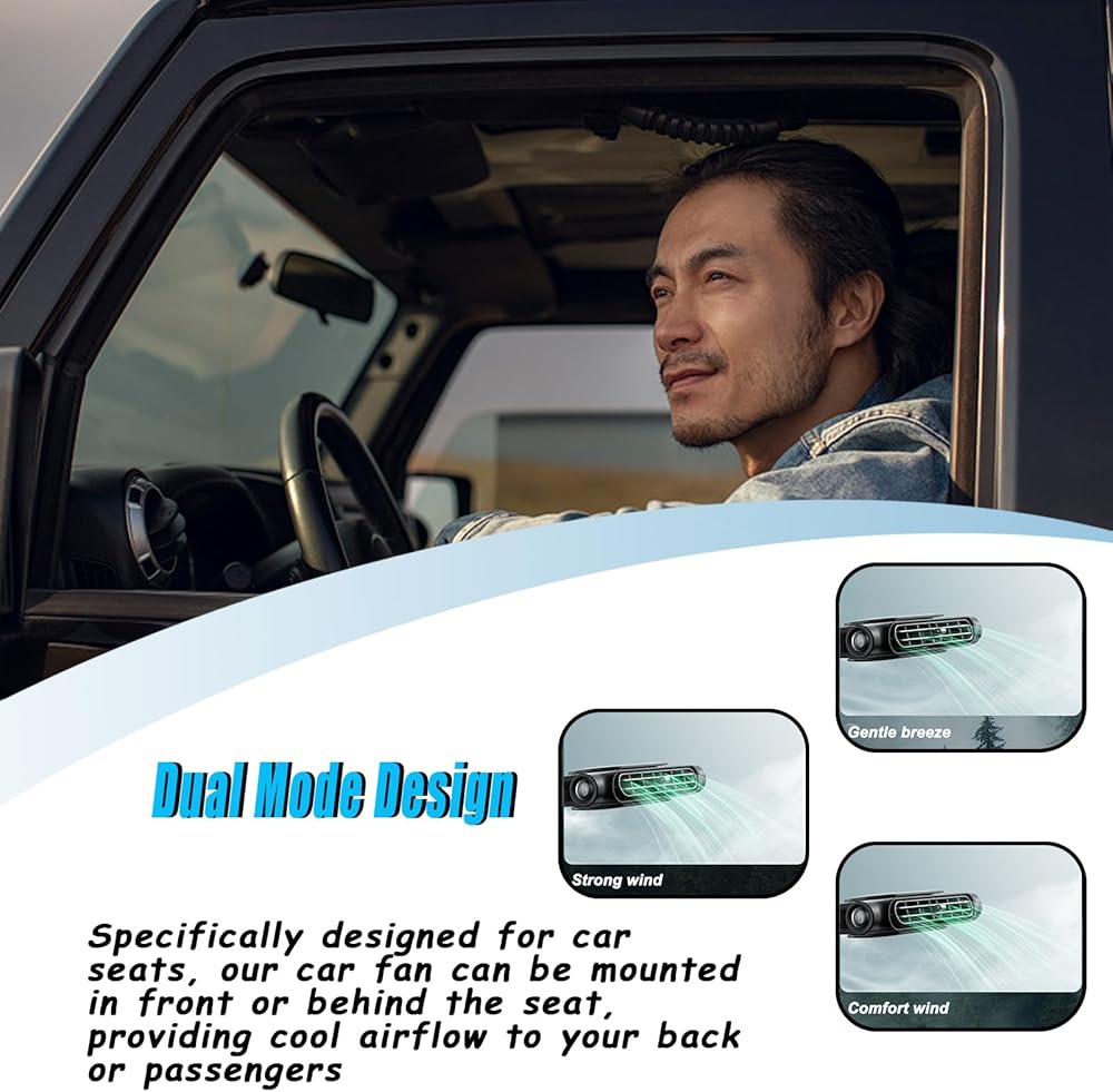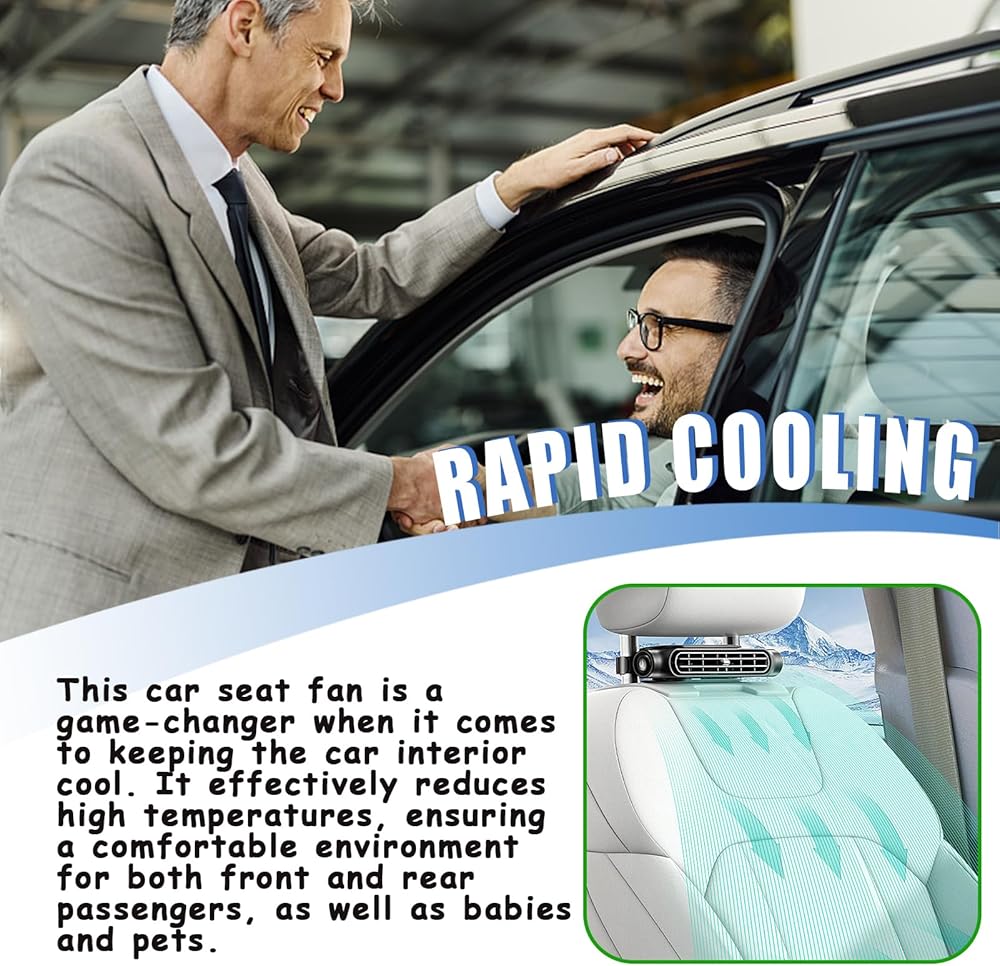 [RAPID COOLING] This car seat fan is a game-changer when it comes to keeping the car interior cool. It effectively reduces high temperatures, ensuring a comfortable environment for both front and rear passengers, as well as babies and pets. By maximizing the airflow, it quickly circulates the air inside the car, making the space more pleasant. Despite its powerful performance, it keeps the noise levels to a minimum. So, whether you're stuck in traffic on a hot day or taking a long road trip, you