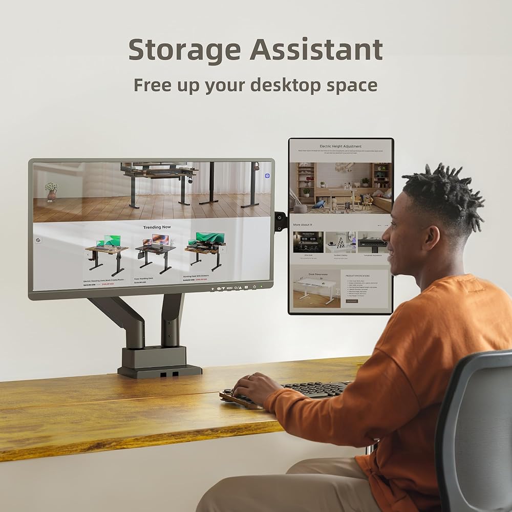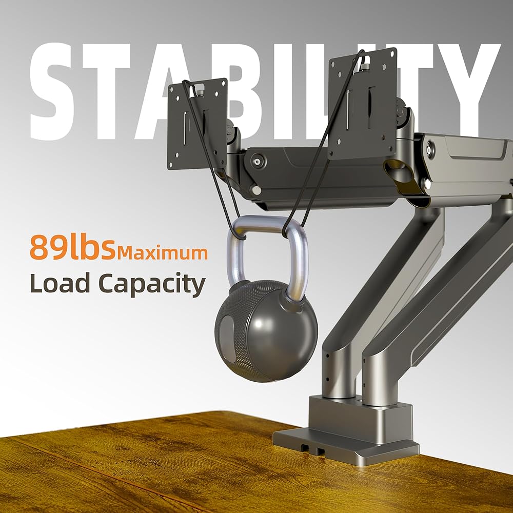 Full Motion Adjustment: This monitor stand offers full adjustability with +135°/-135° rotation, +90°/-90° swivel, and +45°/-45° tilt. These features allow for optimal screen positioning to enhance workspace organization and efficient use of desk space.