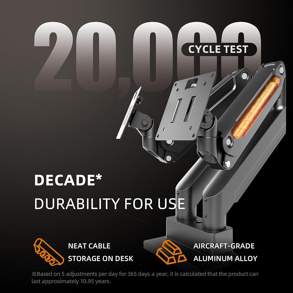 Package & Support: Includes 1 x Claiks Single Monitor Gas Spring Mount, a mounting hardware kit, and a user manual. We also provide experienced and friendly customer support to assist you 7 days a week with any questions or issues.
