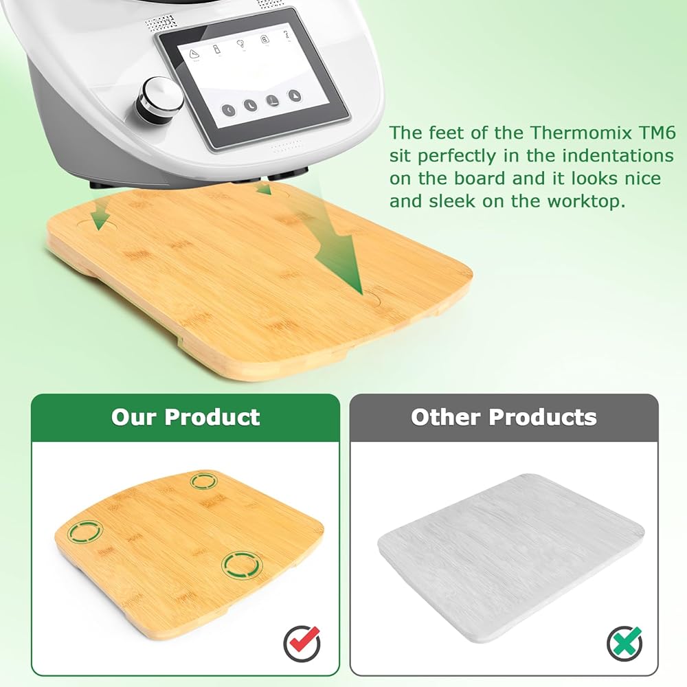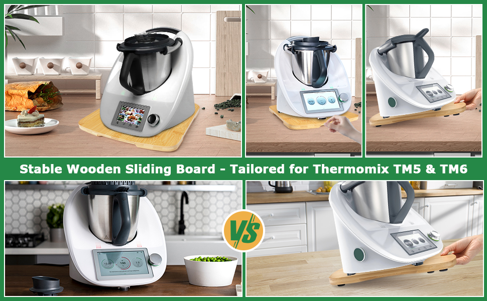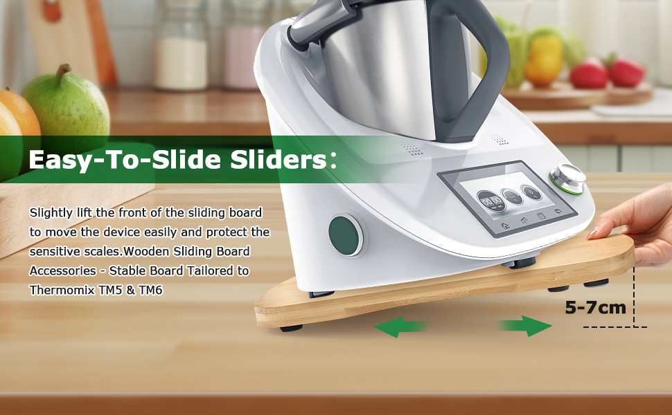 【Accessory for Thermomix】Sliding Board kitchenaid accessories The shape matches the Thermomix very well. The three round recesses on the board correspond to the three feet of TM6 or TM5.Easy to Clean,Simply wipe the smooth surface gently with a cloth.