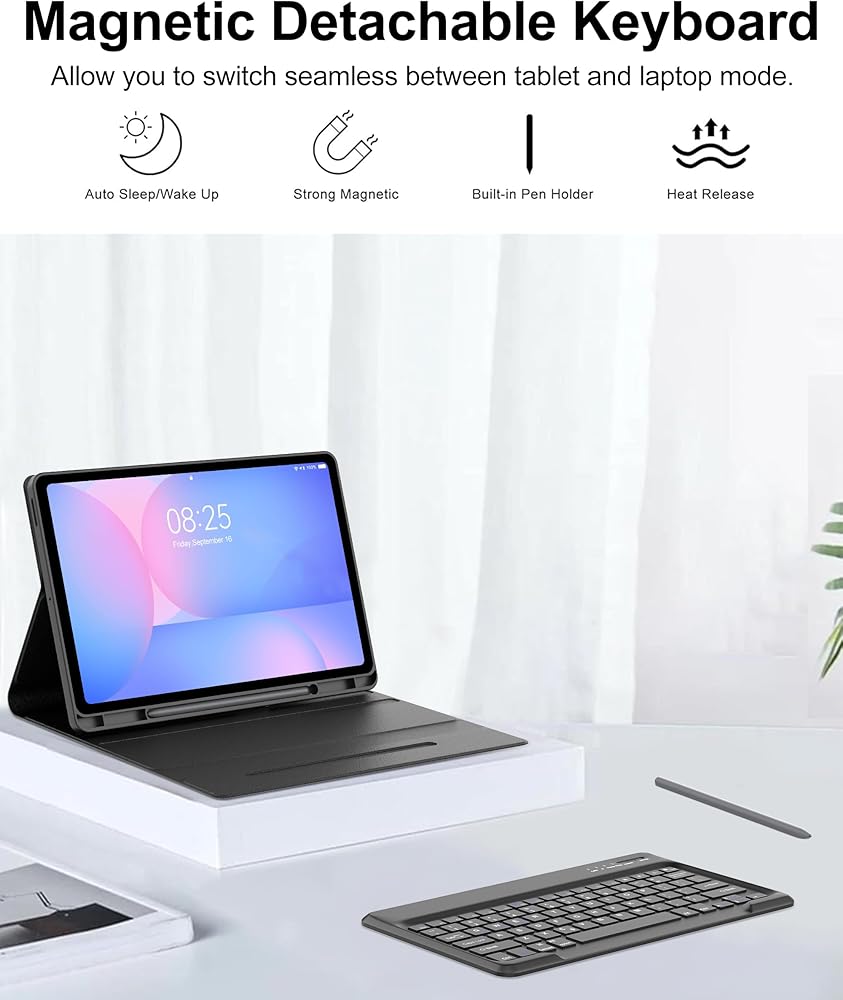 【Keyboard Functionally】Magnetically detachable super slim 5mm and light weight bluetooth keyboard with 10M range. And the book cover keyboard tab s10 fe + with strong magnetic keyboard gives you a stable platform for typing that won't move easily.