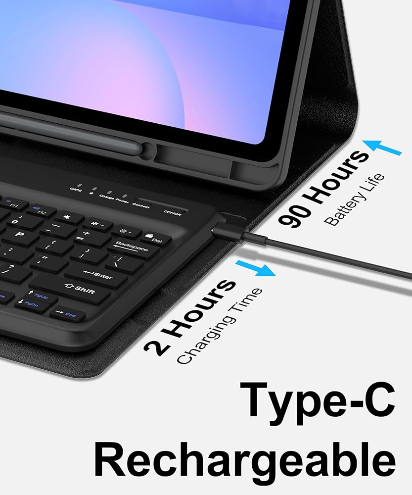 【Rechargeable Battery】Built-in rechargeable battery for long keyboard life. For samsung tablet s10fe+ case keyboard ensures your device is always ready for action.