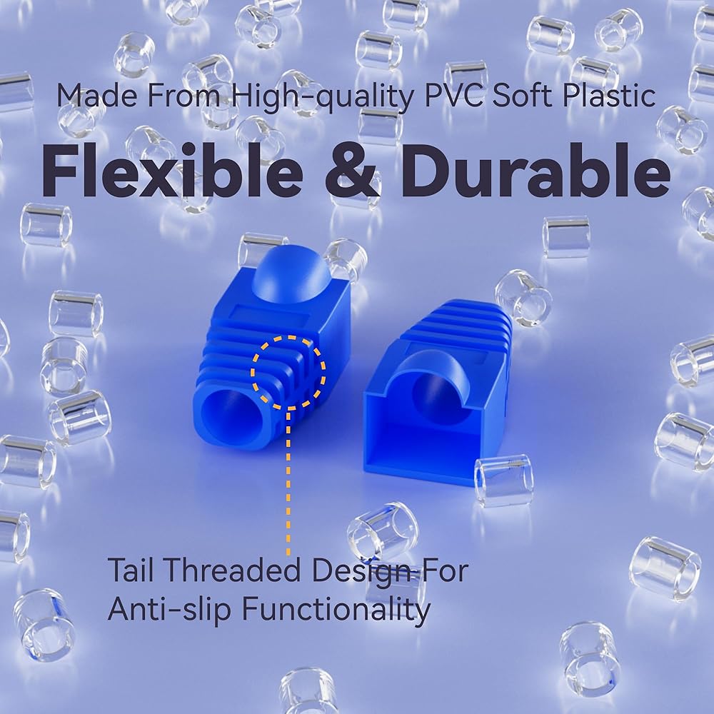 Essential RJ45 Protection: Soft, pliable boots shield crimped plugs on Cat5, Cat5e, and Cat6 cables from damage, snagging, and dust