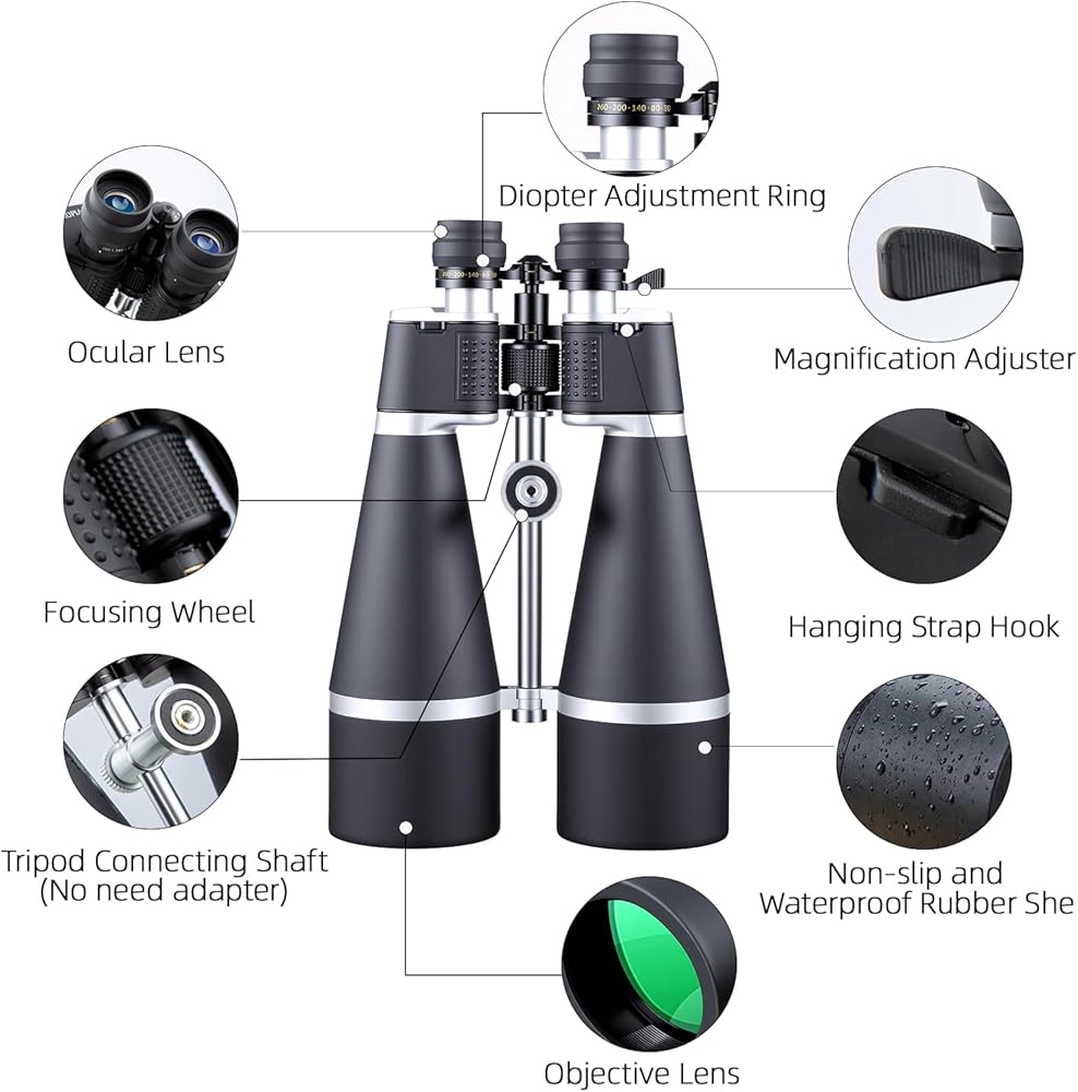 HIGH ZOOM FOR A CONTROLLED VIEW:This 30-260x80 binoculars for adults has a wide zoom range and offer high power,from 30x to 260x.Whether you're bird watching or stargazing,these powerful binoculars will provide clear focus and detailed views to meet your diverse observation needs