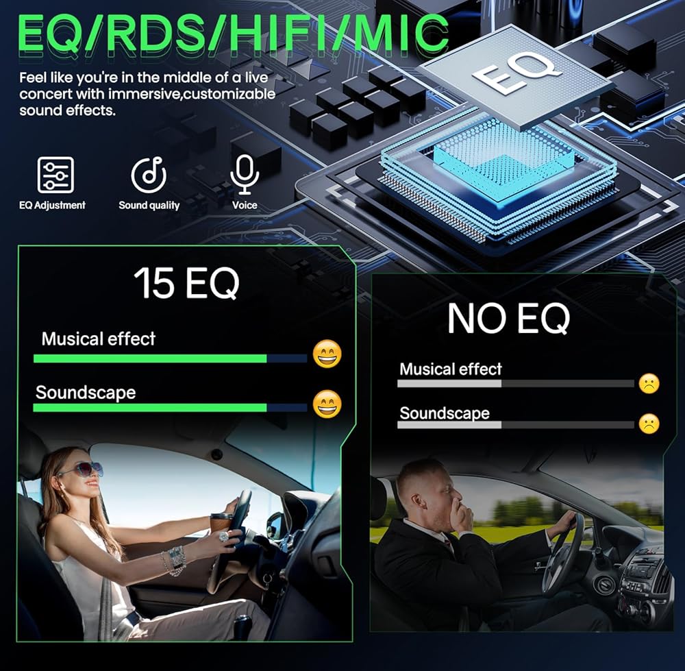 【𝐇𝐢𝐠𝐡 𝐐𝐮𝐚𝐥𝐢𝐭𝐲 𝐀𝐮𝐝𝐢𝐨 - 𝐄𝐐 𝐇𝐈𝐅𝐈 𝐑𝐃𝐒 𝐁𝐚𝐬𝐬】 The built-in 16-band EQ and HIFI audio allow you to customize your audio settings to match your taste, whether you're listening to classical music, rock, or podcasts. The stereo's support for FM/RDS ensures you can tune into your favorite radio stations, delivering crystal-clear sound that enhances your driving experience.