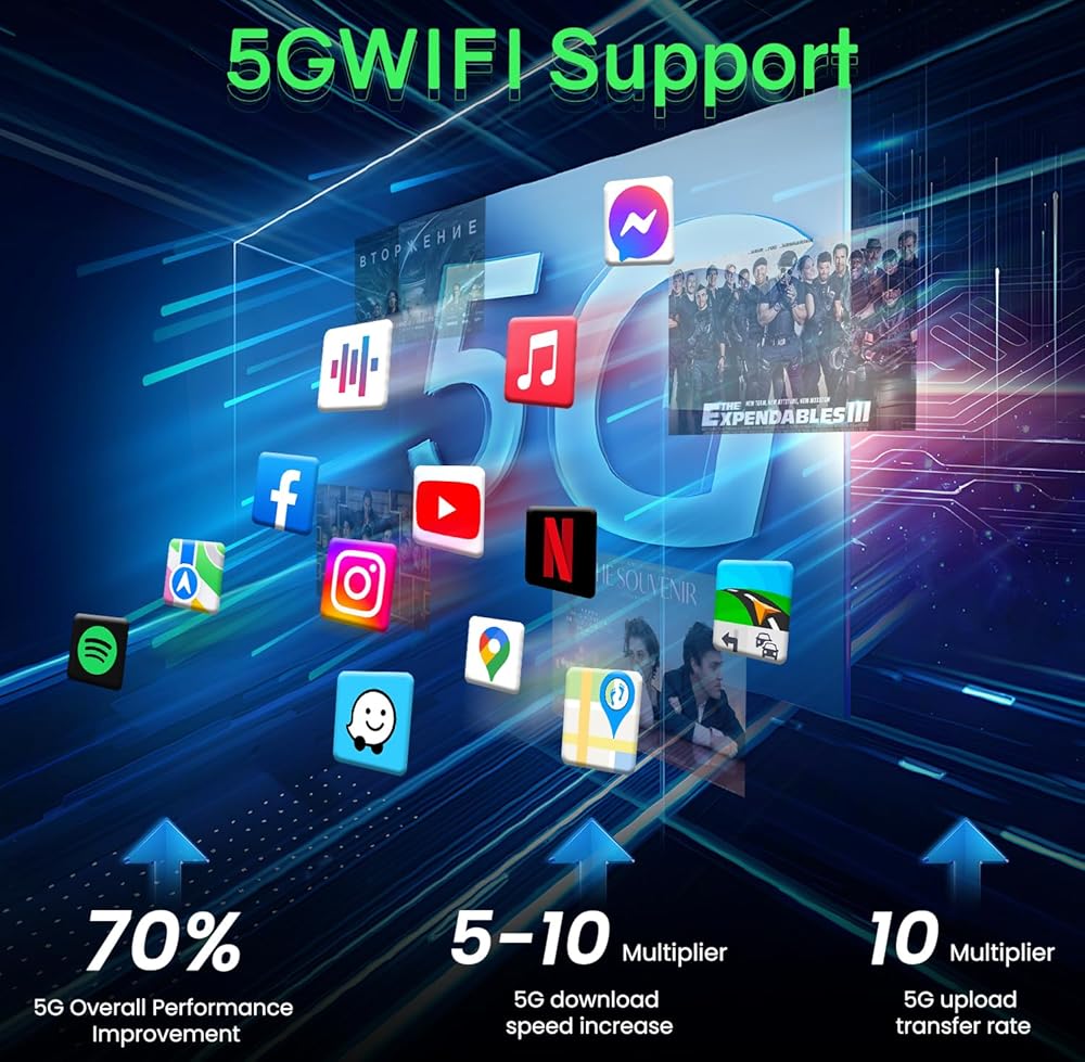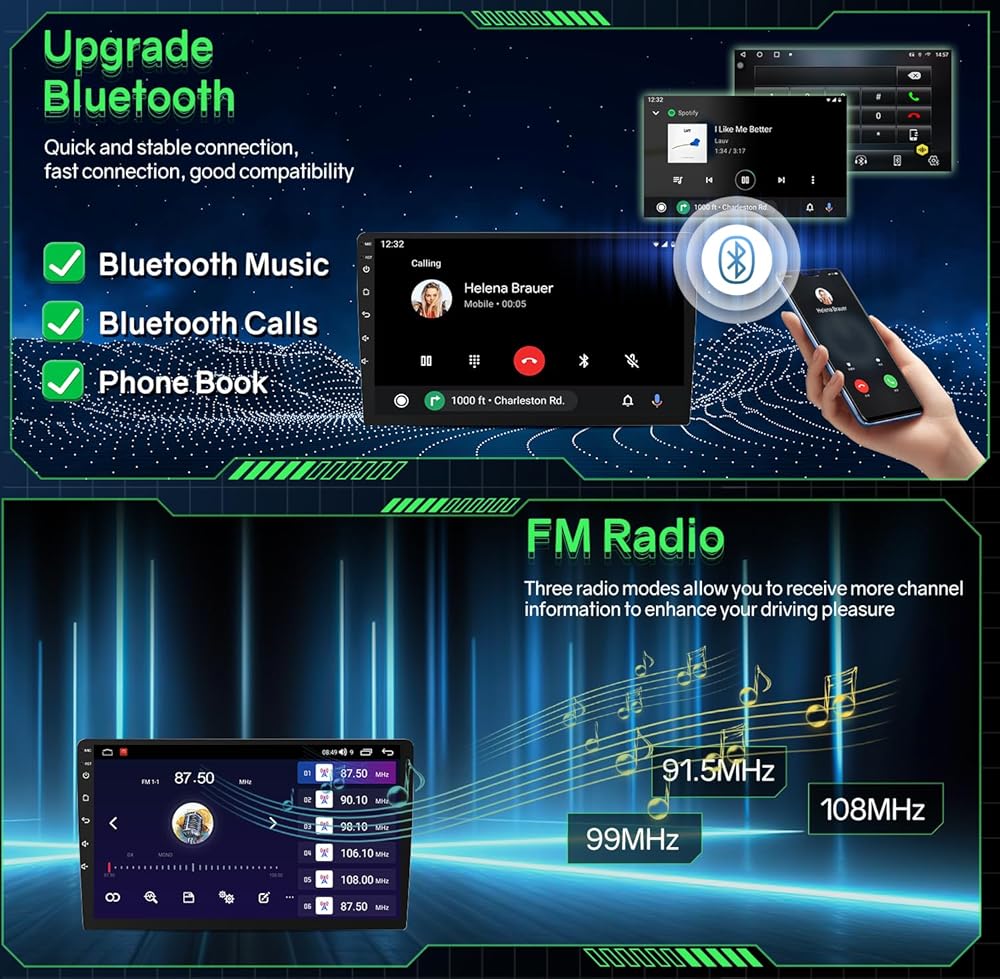 【𝟓𝐆𝐖𝐈𝐅𝐈 𝐒𝐮𝐩𝐩𝐨𝐫𝐭 & 𝐁𝐥𝐮𝐞𝐭𝐨𝐨𝐭𝐡 𝟓.𝟎】 This stereo has the latest Bluetooth 5.0 technology and 5G WiFi support. Stream music, make hands-free calls, and use GPS navigation with real-time updates, all without losing connectivity. That means you can enjoy your favorite playlists, stay in touch with family and friends, and navigate unfamiliar routes confidently, making every trip smooth and stress-free.