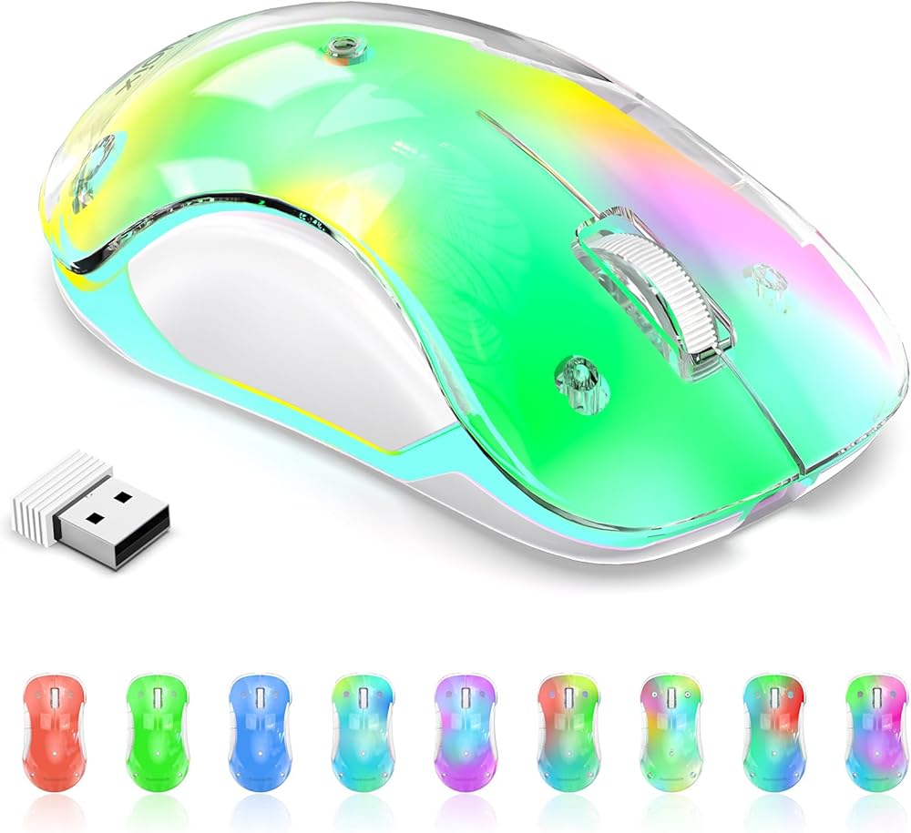 【Mesmerizing 9-Color RGB Light Show & Magnetic Transparent Cover】 Watch your desk come alive with auto-cycling RGB hues that pulse as you work or play. The precision-engineered magnetic cover snaps securely while revealing the stylish inner mechanics - a conversation starter for any setup.