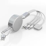 Multi Charging Cable: The 4-in-1 retractable charging cable has two input ports, USB and Type-C, and 4 different output ports, including Lightning, Type C, Micro USB, and iWatch charger, supporting charging four devices at the same time. Whether you use Android or Apple devices, this charging cable can meet your diverse charging needs.