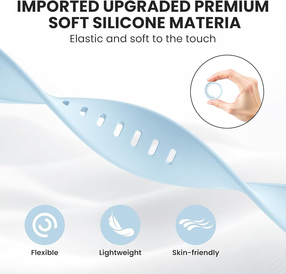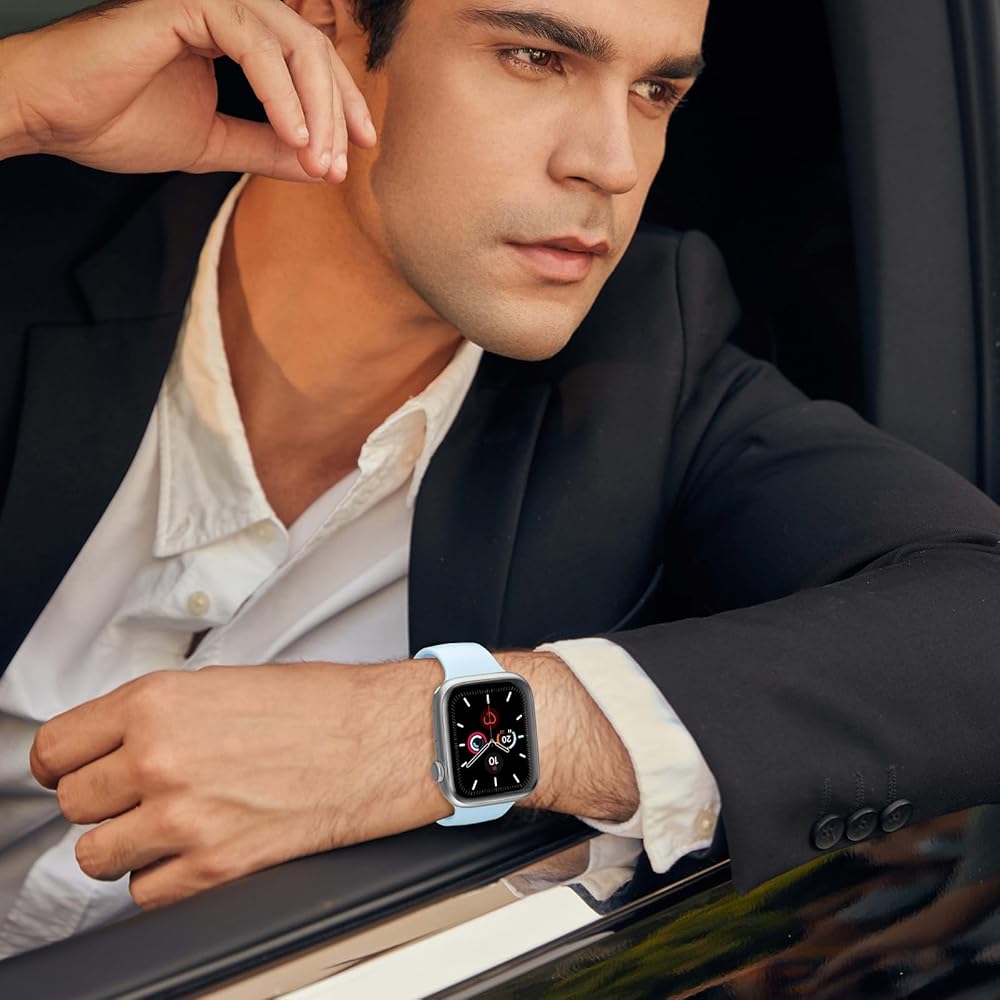 المواد المميزة: تم تصميم نطاقات Apple Watch البديلة للسيليكون هذه من السيليكون الناعم عالي الجودة ، مما يضمن ملاءمة مريحة. حزام Apple Watch متين ، مقاوم للماء ، مقاوم للبقع ، وخفيف الوزن على الرسغ.