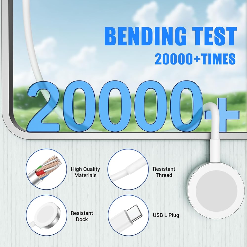 6-foot iWatch Cable: this 6-foot watch Cable and charger pack is lightweight and portable for your home office or travel needs. After 2000 times of bending test, to ensure the durability of the quality.