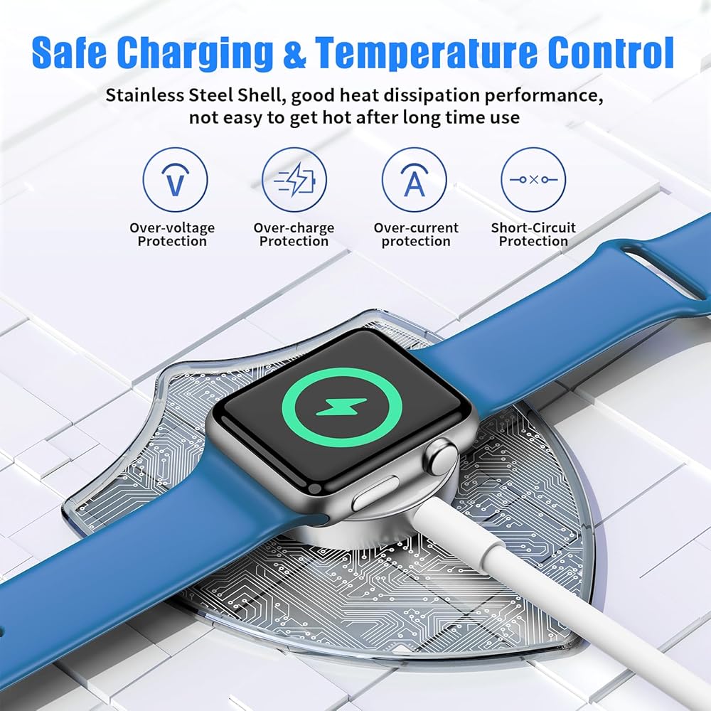 Multiple security protection: the iWatch charging cable is made of high-quality ABS + PC and pure copper wire. The Charger has a built-in security chip to provide protection functions such as over-current, over-voltage, short-circuit and over-temperature protection, can provide a safe and stable charging of the device.