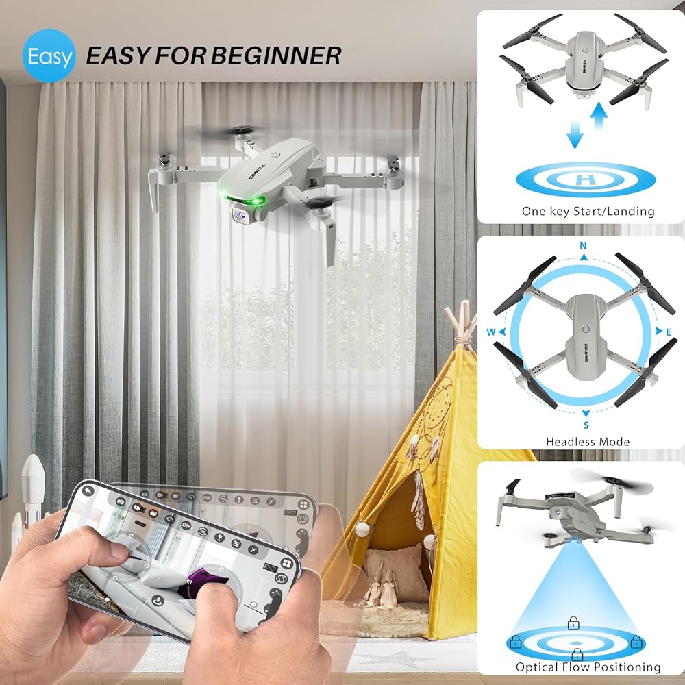 [Foldable and Portable Design]: SIMREX X800 mini drone is light, equipped with a 1080P camera, adjustable 90 lens, and weighs only 96g. It is fashionable and lightweight, and it is convenient for you to carry with you. It is equipped with RGB lights, so you don't have to worry about flying at night, and it can assist you with wonderful images anytime and anywhere!