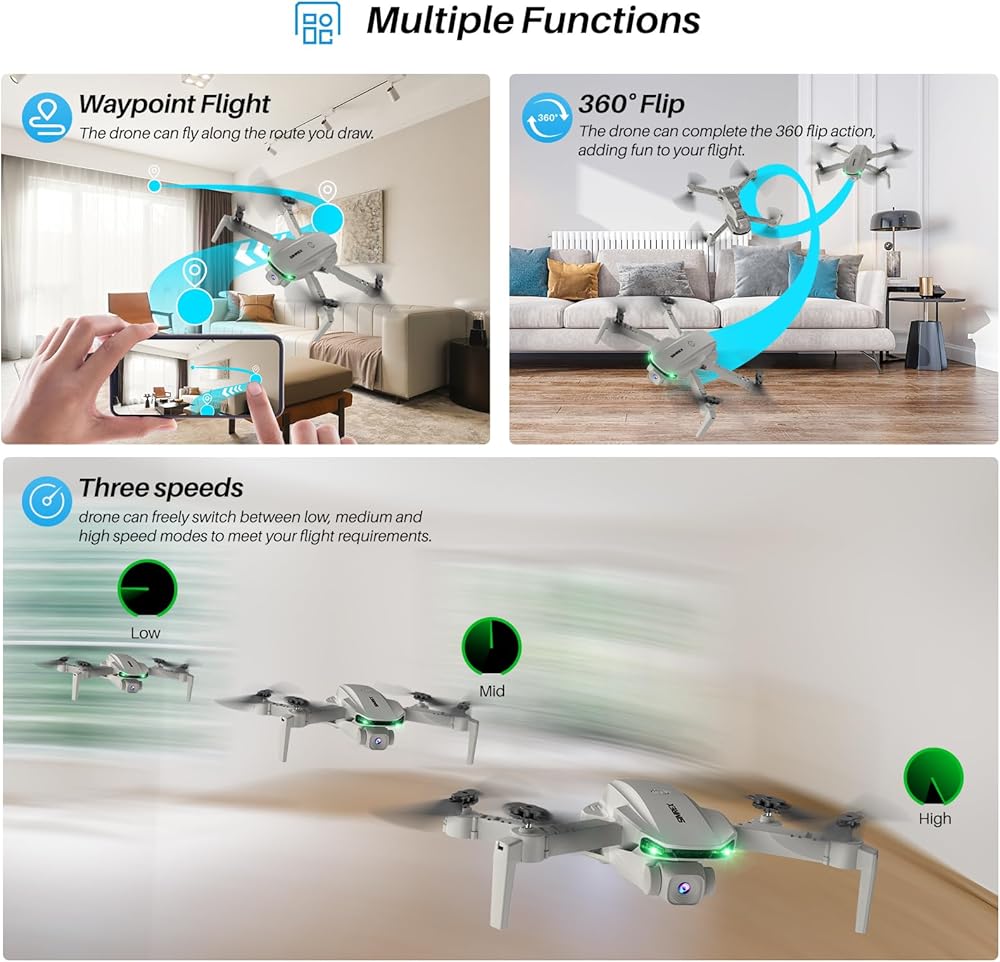[Multifunctional Drone] Enjoy intelligent features such as flying along a set path, gravity sensing, 360° flips, headless mode, and 3-speed adjustment for easy control.