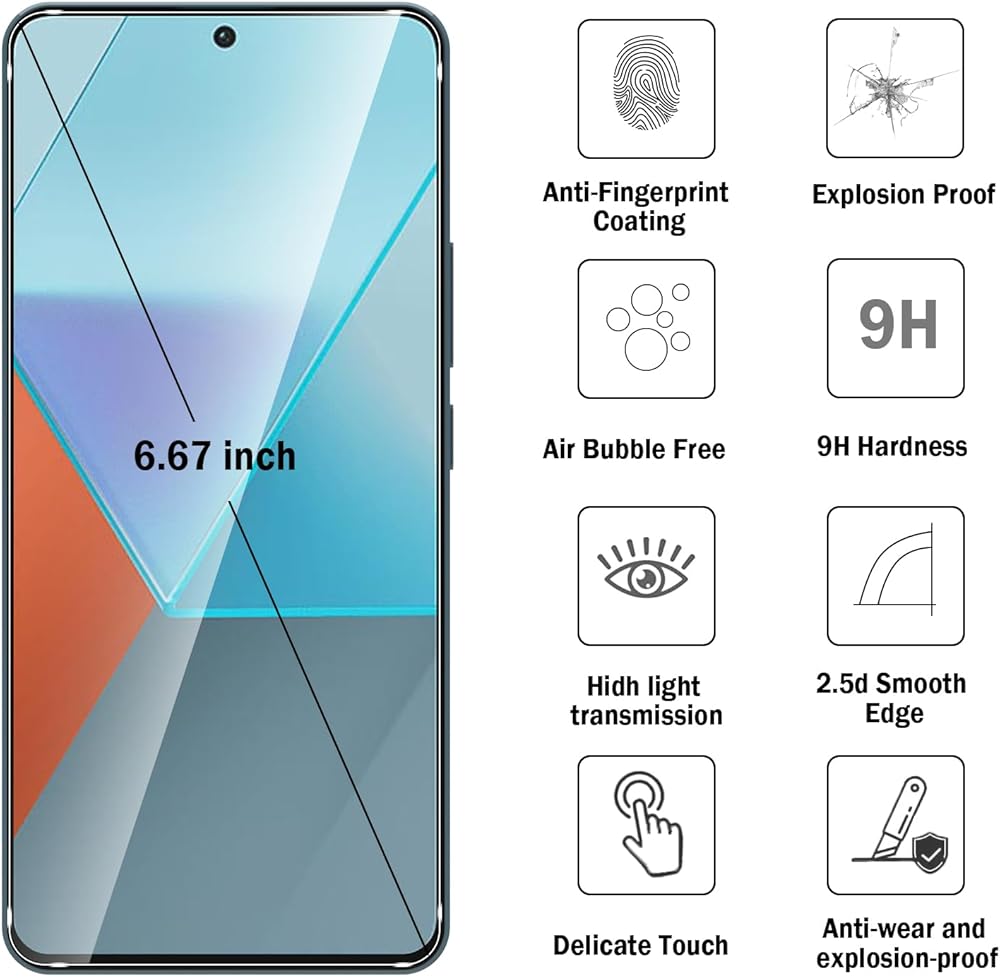 2+2 Pack for Xiaomi Redmi Note 13 Pro 5G/Poco X6 Screen Protector with Camera Lens Protector,Full Coverage 9H Tempered Glass Film,HD Clear Scratch Resistant,Bubble-Free