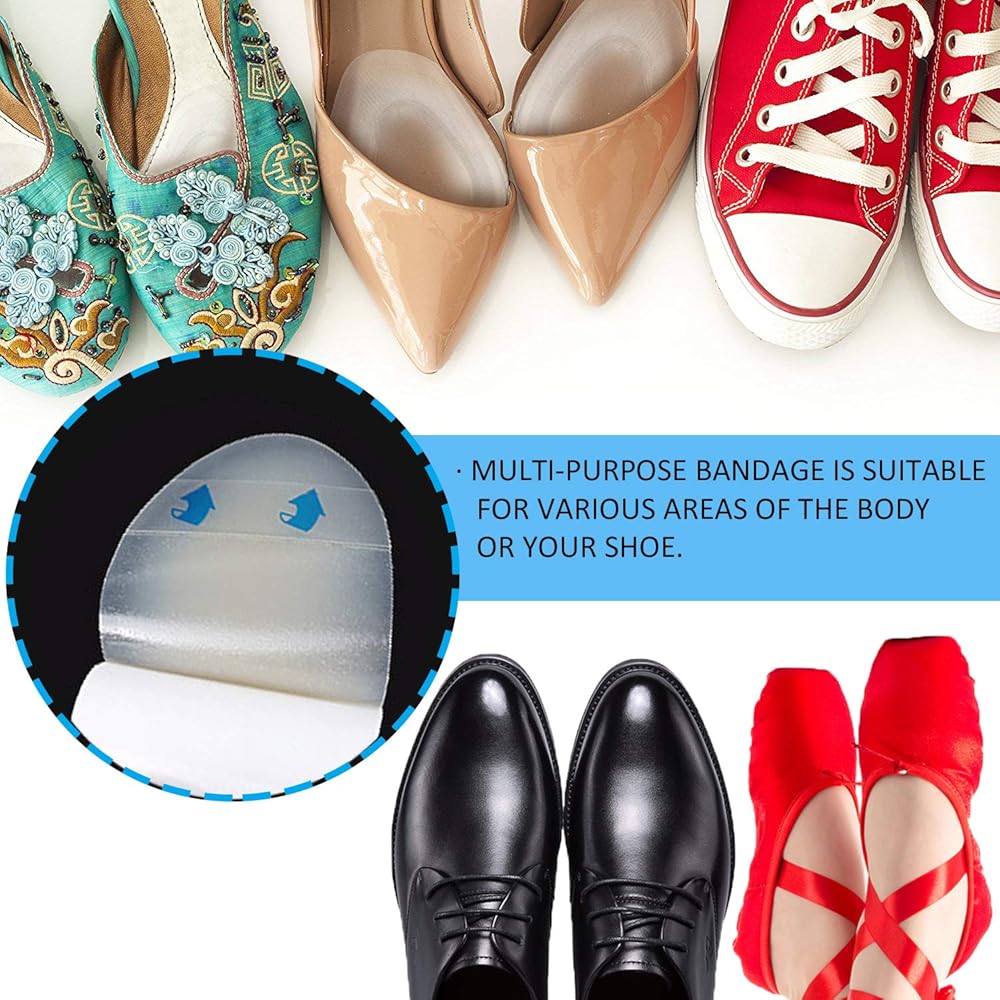 ✔ COMFORTABLE AND LONG-LASTING - Multi-purpose blister pads is suitable for various areas of the body, including heel, finger, ankle and toe. Also Use in swimming and showering. Or you can stick it to inner side of your shoe.