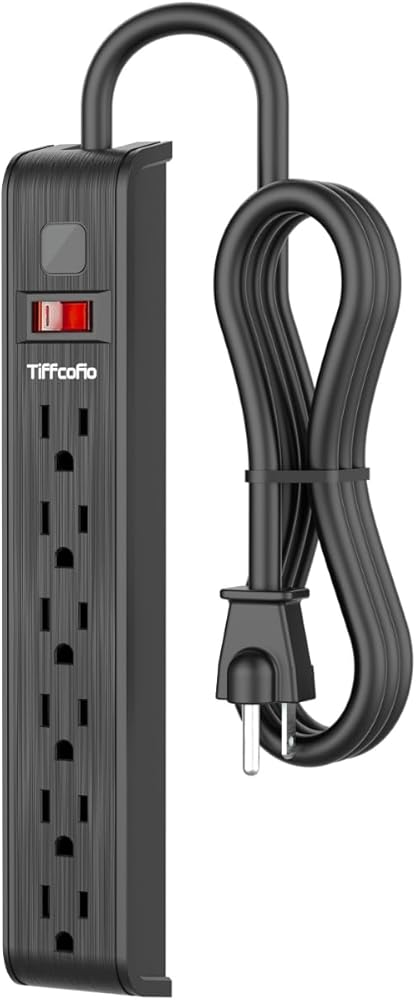 【6-Outlet Surge Protector Power Strip】: 6 AC outlets with surge protection , protect your device from spikes and surges; Use integrated copper strips for tighter plug insertion and prevent the risk of short circuits.