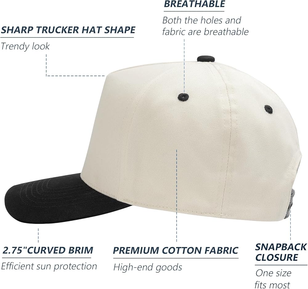 Premium Quality & Colors - Each blank trucker hat is made of 100% high-end cotton, lightweight and breathable. The plain baseball cap offers various color options, black hat, camo hat, white hat, 2-tone saddle and creme color scheme.Neutral shade that pairs with everything