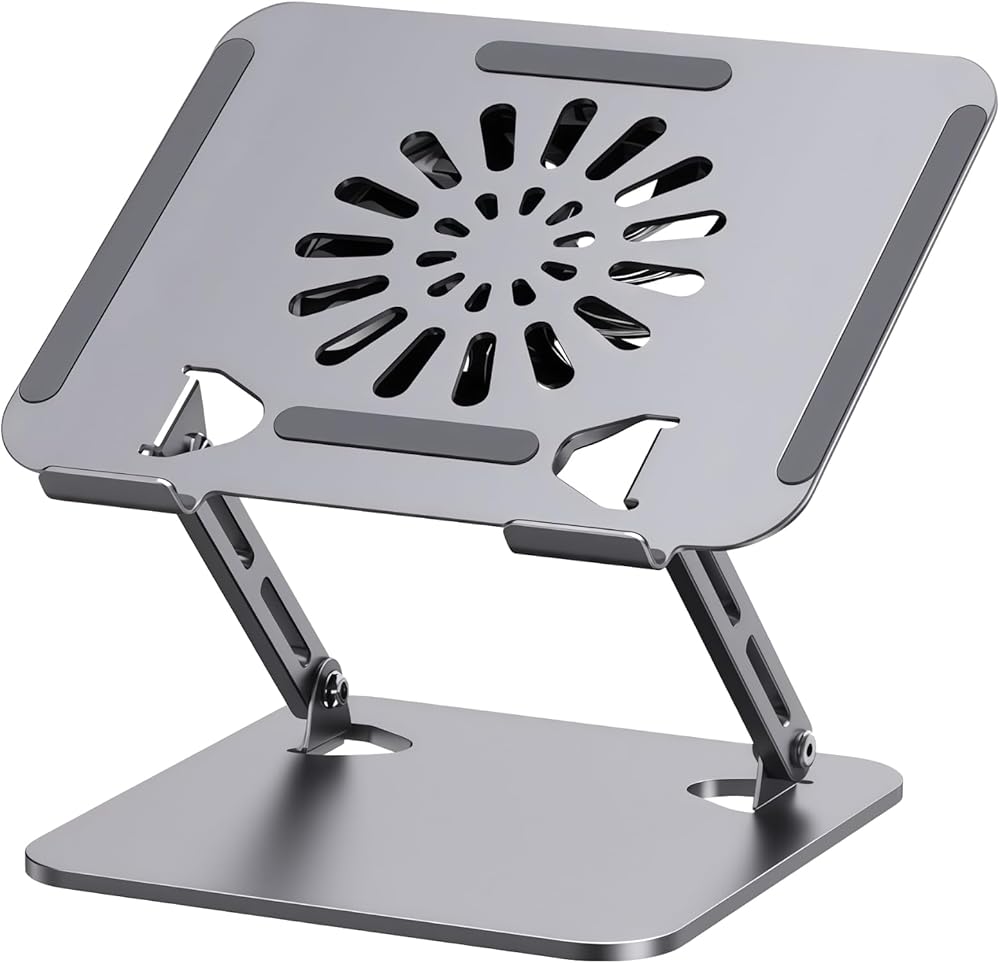 Anti-Slip Base, USB Cooling Pad with Fan, Desk Riser Ergonomic, Adjustable Cooling Stand for Laptop and Tablet, Carbon Steel Frame, Fits 10–17 Inch Devices
