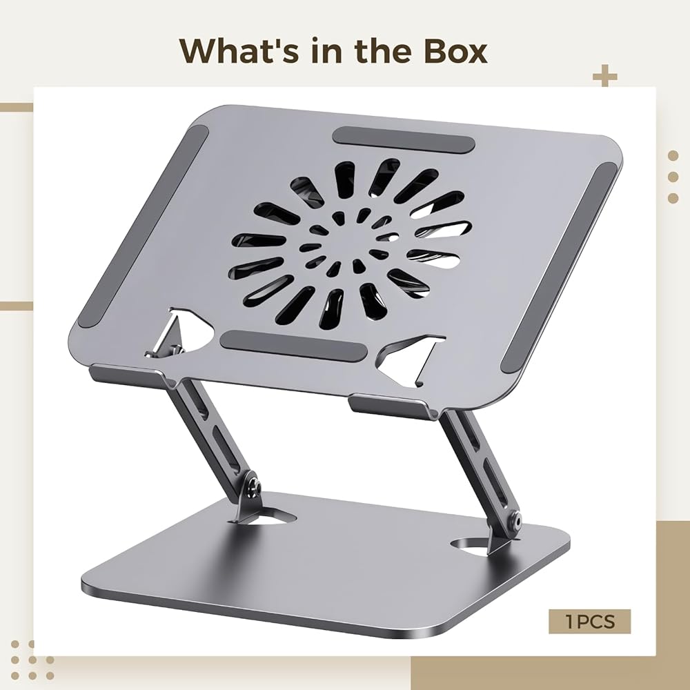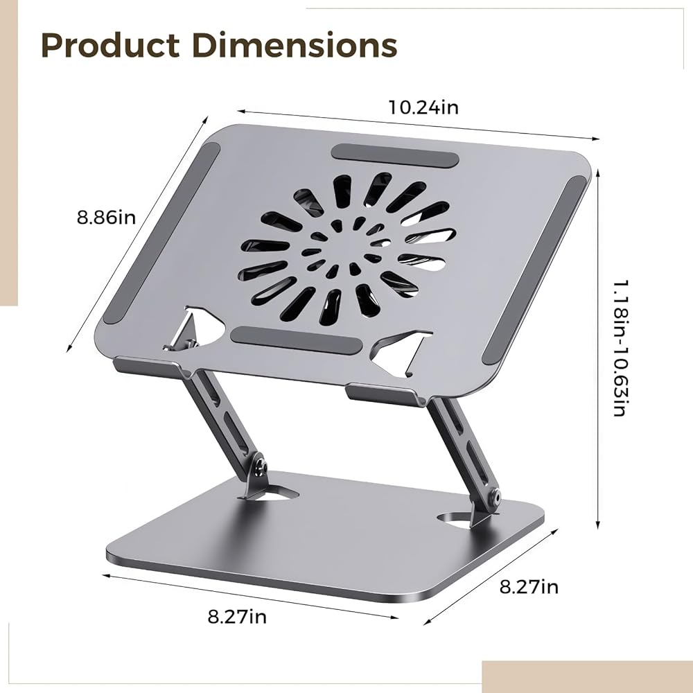 Color:Grey Material:Carbon Steel Product Size: 10.2 x 8.9 x 1.2-10.6 in Package Includes:1 x Laptop Cooling Stand Note: - Please refer to the measurement. Tiny measuring error is allowable in normal range. - There might be a little color difference due to the monitor, camera or other factors, please refer to the physical item.