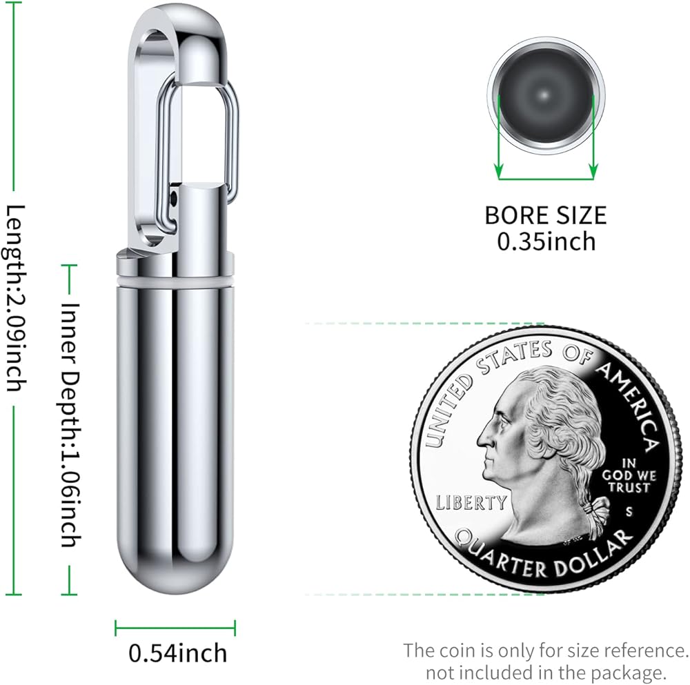 【MINI SIZE&Weight】: 0.39oz (11g)/inner diameter: 9 mm (0.35 inch)/inner length: 26 mm (1 inch). Pls confirm if this pill fob is suitable for your pills before purchase.