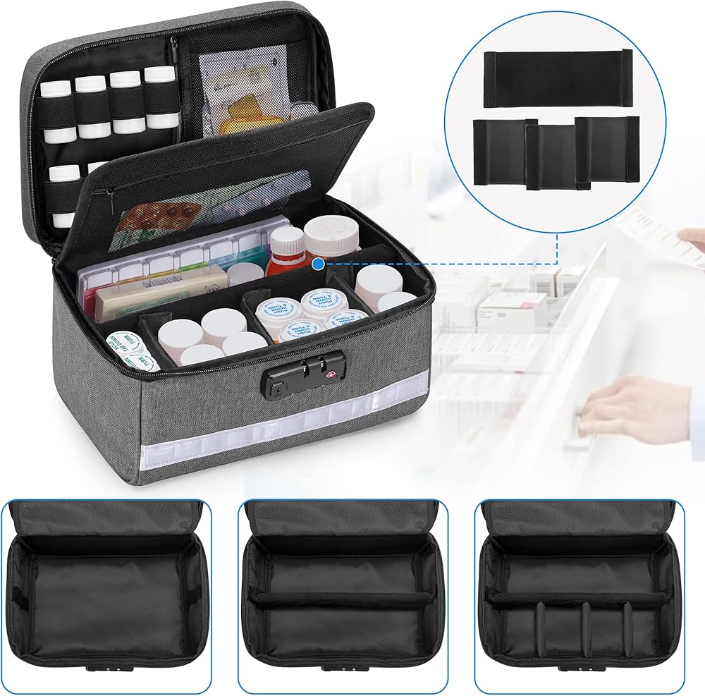 【Convenient for Storage】: Our medicine organizer bag comes with 4 detachable dividers, you could separate main compartment into several parts according to your needs to hold various pill bottles, medical supplements or emergency medical supplies.