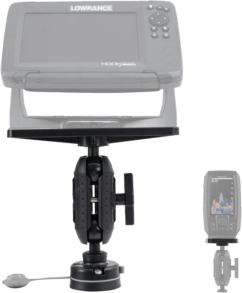 HITORHIKE Universal Fish Finder Mount for Kayak-with Transducer Arm Options,Ball Base,Dual Plates, Fits 9" Electronics,Compatible with Garmin/Lowrance/Humminbird(Basic Mount Set)
