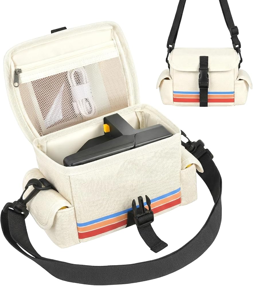 5.Retro Style Meets Modern Use: Crafted from durable cloth with 3-color retro for Polaroid -themed lines, it fits young tastes perfectly. The strap even shortens into a handy handle-blending fashion with function, so you look great while keeping your gear safe.