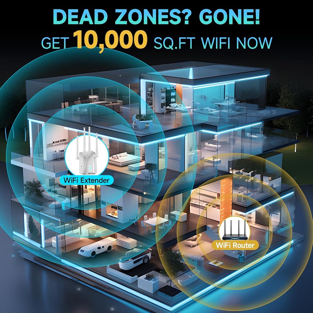120% Wider Coverage Across 10,000 Sq.Ft: Hyzom's WiFi Extender Signal Booster blasts through concrete walls and appliances, eliminating dead zones in homes, garages, and outdoor. It delivers 120% wider coverage than standard routers - perfect for 4K streaming across 10,000 sq.ft