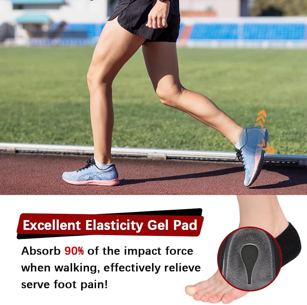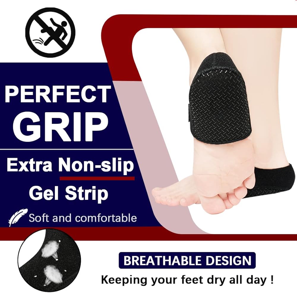 【More Stable than Silicone Heel Cups】Based on customers' feedback, We have upgraded our heel cups material and design - made of high-elastic and breathable neoprene material, design with the adjustable hook&loop which aims to perfectly hold in place, effectively disperses heel pressure to relieve pain, while ensure the heel gel pads stay in place and won't slip in your shoe, providing you with the best walking experience!