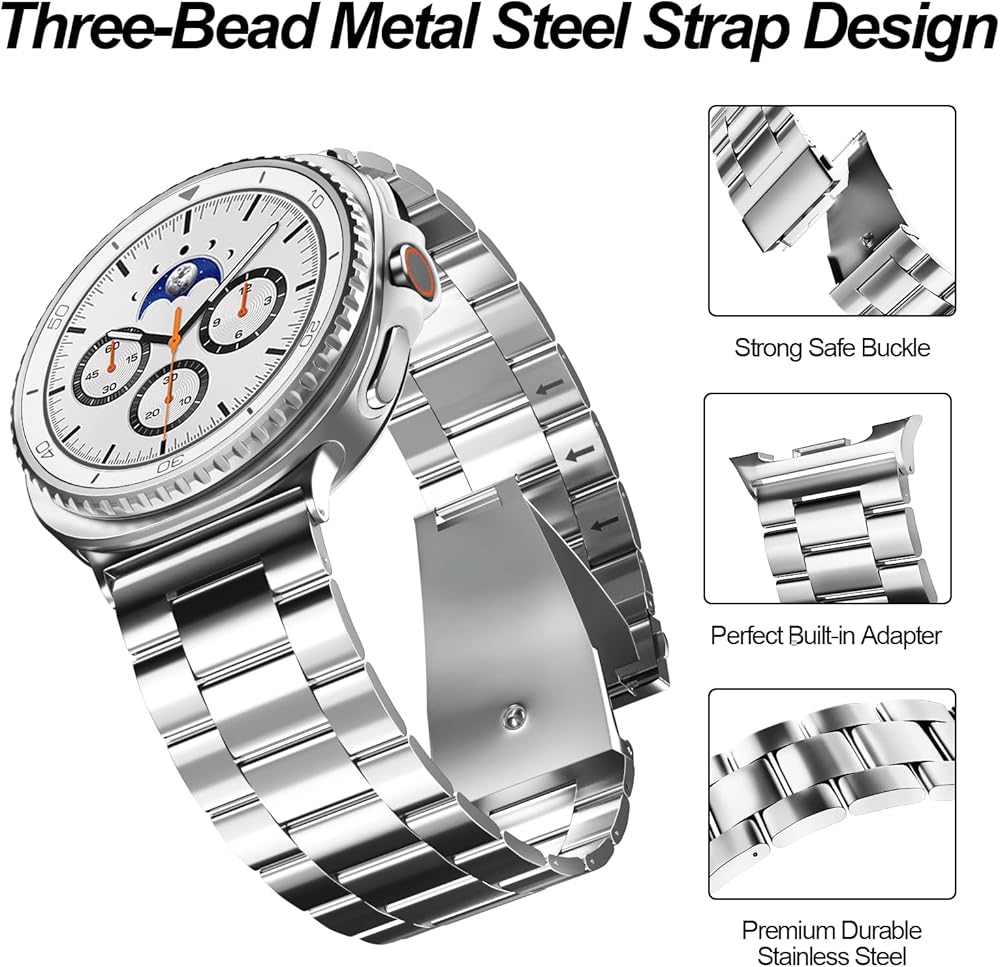 Compatible for Samsung Galaxy Watch 8 40mm 44mm/Galaxy 8 Classic 46mm Bands,No Gap One Click Rugged Stainless Steel Replacement Strap Metal Bands for Men Women