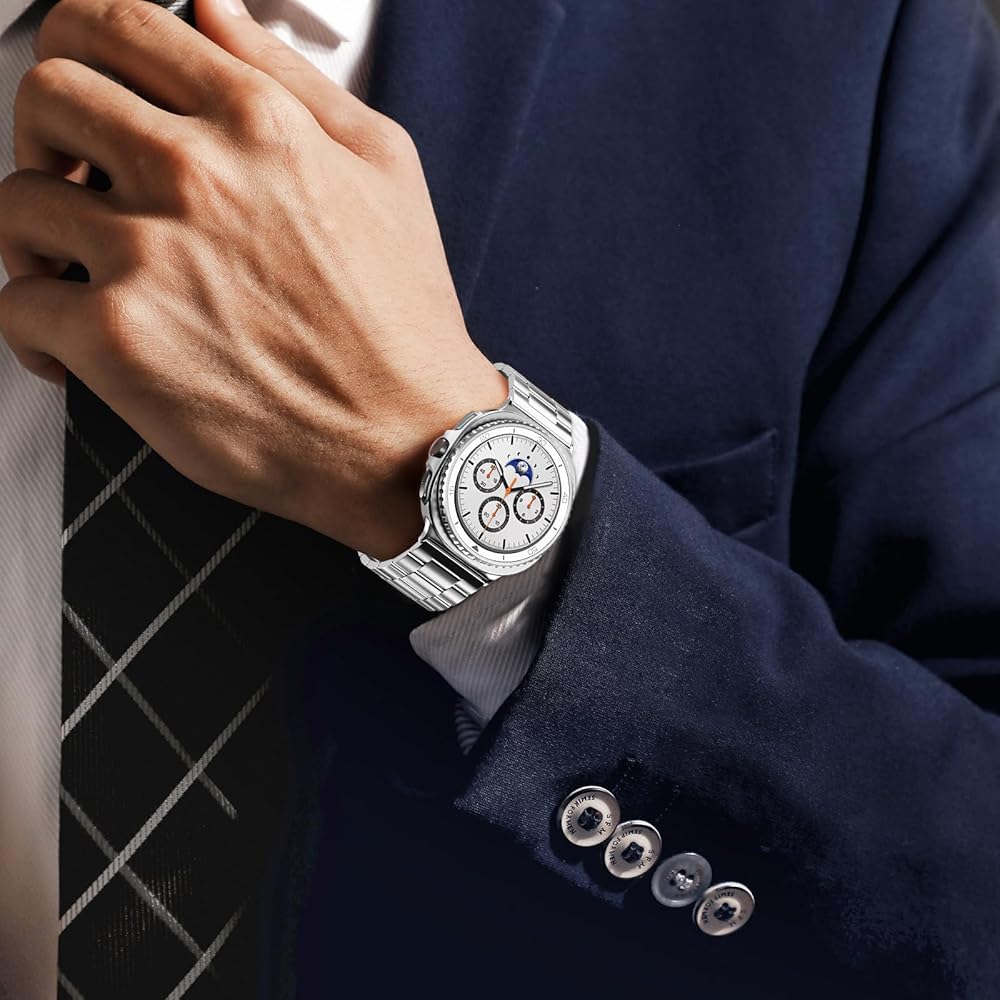 Compatibility: The No Gap metal bands Compatible with compatible with Samsung Galaxy Watch 8 40mm 44mm/ Galaxy Watch 8 Classic 46mm (NOT for Galaxy Watch Ultra-2025),suitable for both men and women, elegant appearance gives you wonderful experience.Please Verify your Galaxy watch model before purchase, Watch not Included.