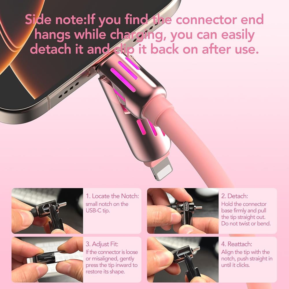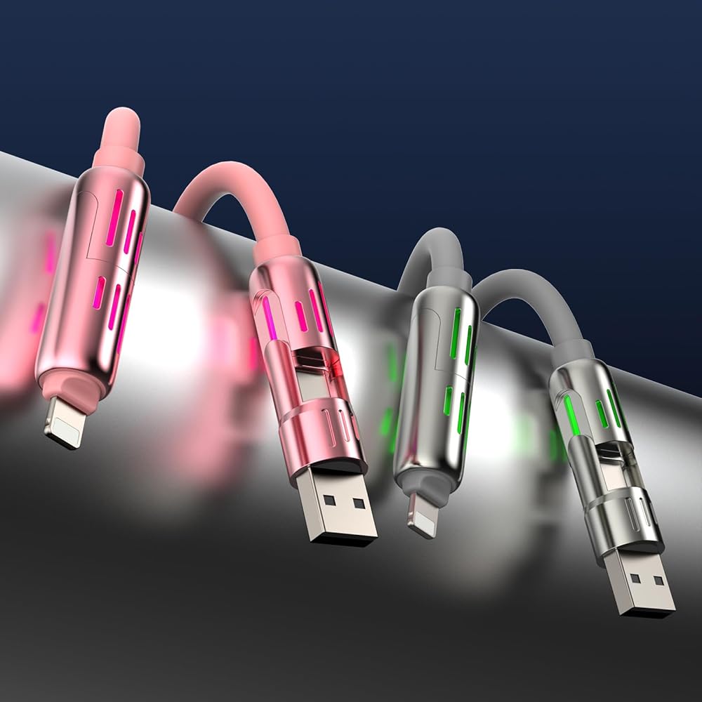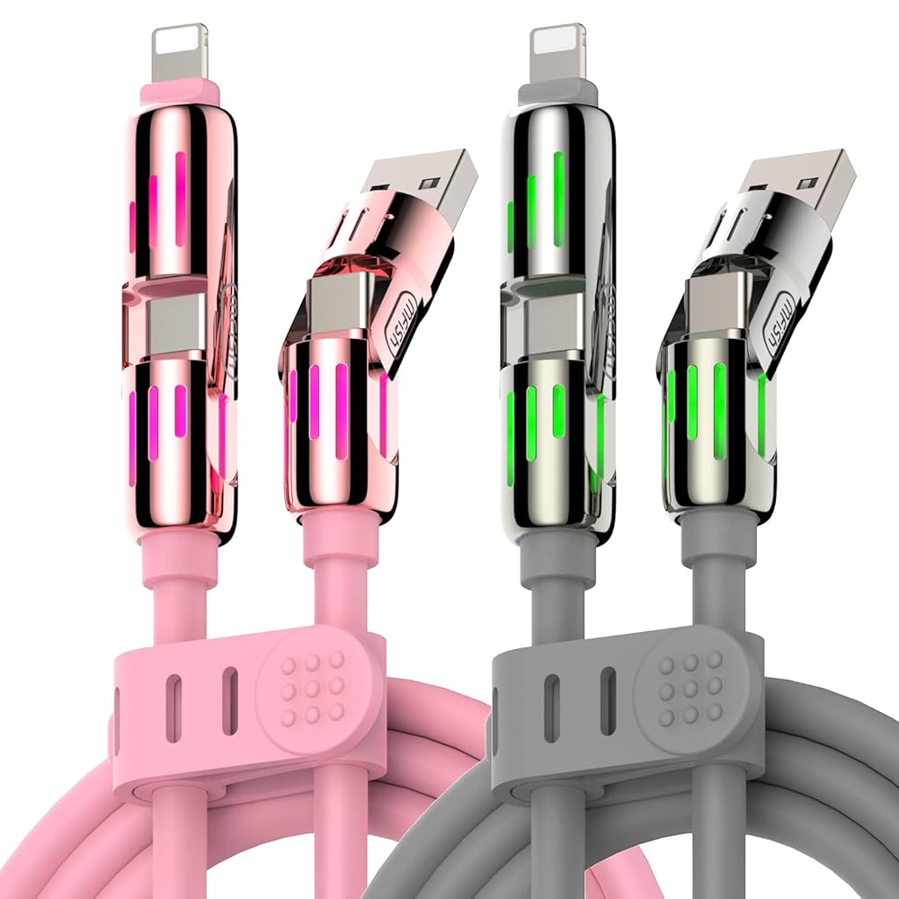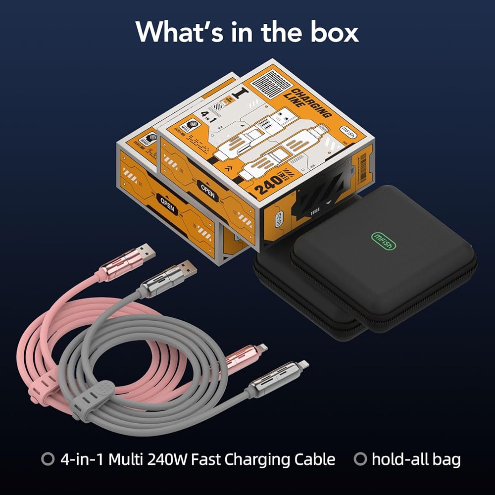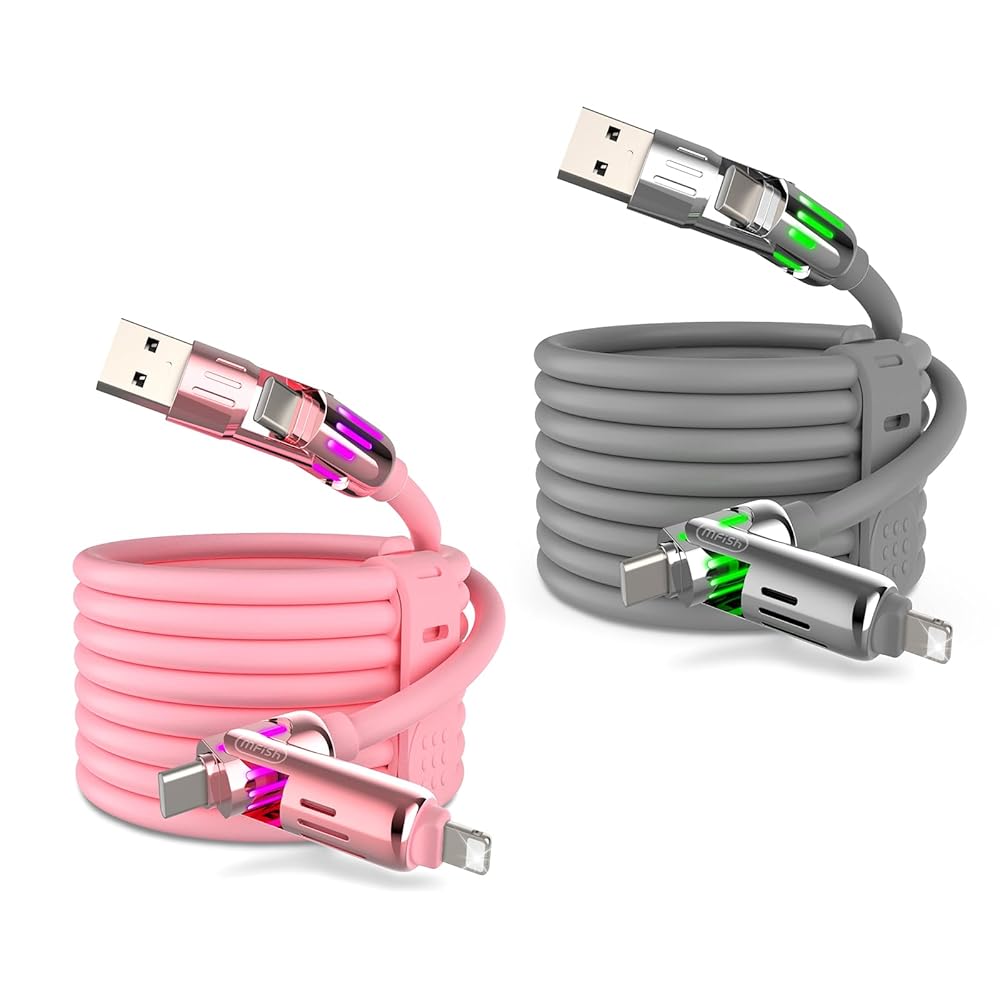 4-in-1 Universal Cable – One Cable. Every Device. Eliminate cable clutter with the MFish 4-in-1 charging cable featuring USB-C to USB-C, USB-C to Lighting, USB-A to USB-C, and USB-A to Lighting connectors. Designed to power nearly all your tech essentials—iPhones, iPads, Samsung Galaxy, MacBooks, laptops, tablets, and more.