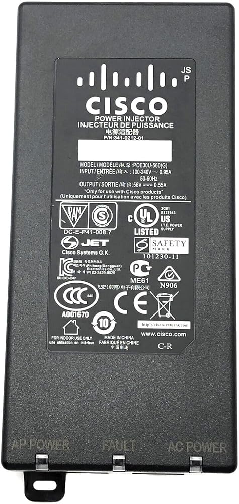 56V 0.55A 30W Power Injector AC/DC Adapter Supply for AiroNet 1140 2600 1040 1600 2600 Series