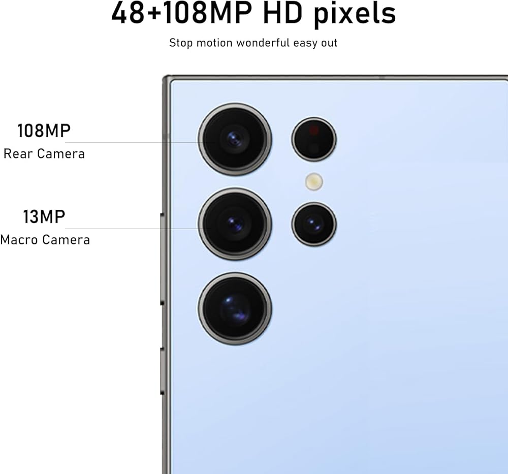 📷【108MP+48MP Camera+AI Face Fingerprint Unlocked】The Android phone comes with a 108MP main camera with enhanced image processing algorithms that make every photo exceptionally clear and detailed without being eye-catching or lifelike. The 48MP front camera further enhances the clarity and delicacy of facial features, helping you take creative selfies with accurate colors. Get your phone unlocked upon recognizing your face with AI face unlock.
