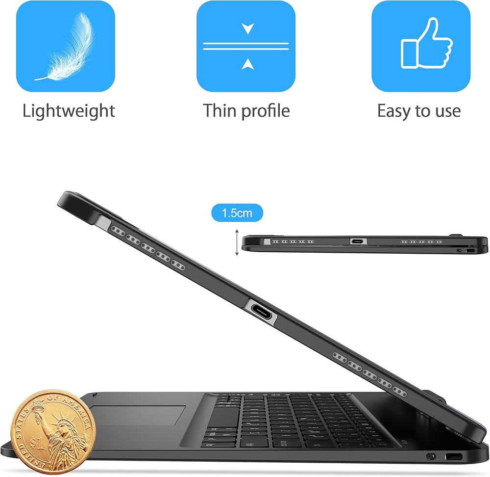 Enhanced Technology - Keyboard for iPad Pro 12.9-inch has a wider key pitch, the error rate when typing is significantly lower, the buttons make it feel like you are typing on a regular laptop, allowing for optimal typing. The keyboard case will improve your efficiency with its sensitive, accurate and multi-gestures touchpad, just like using a mouse (optional: press Fn+T to turn on/off the trackpad function ).