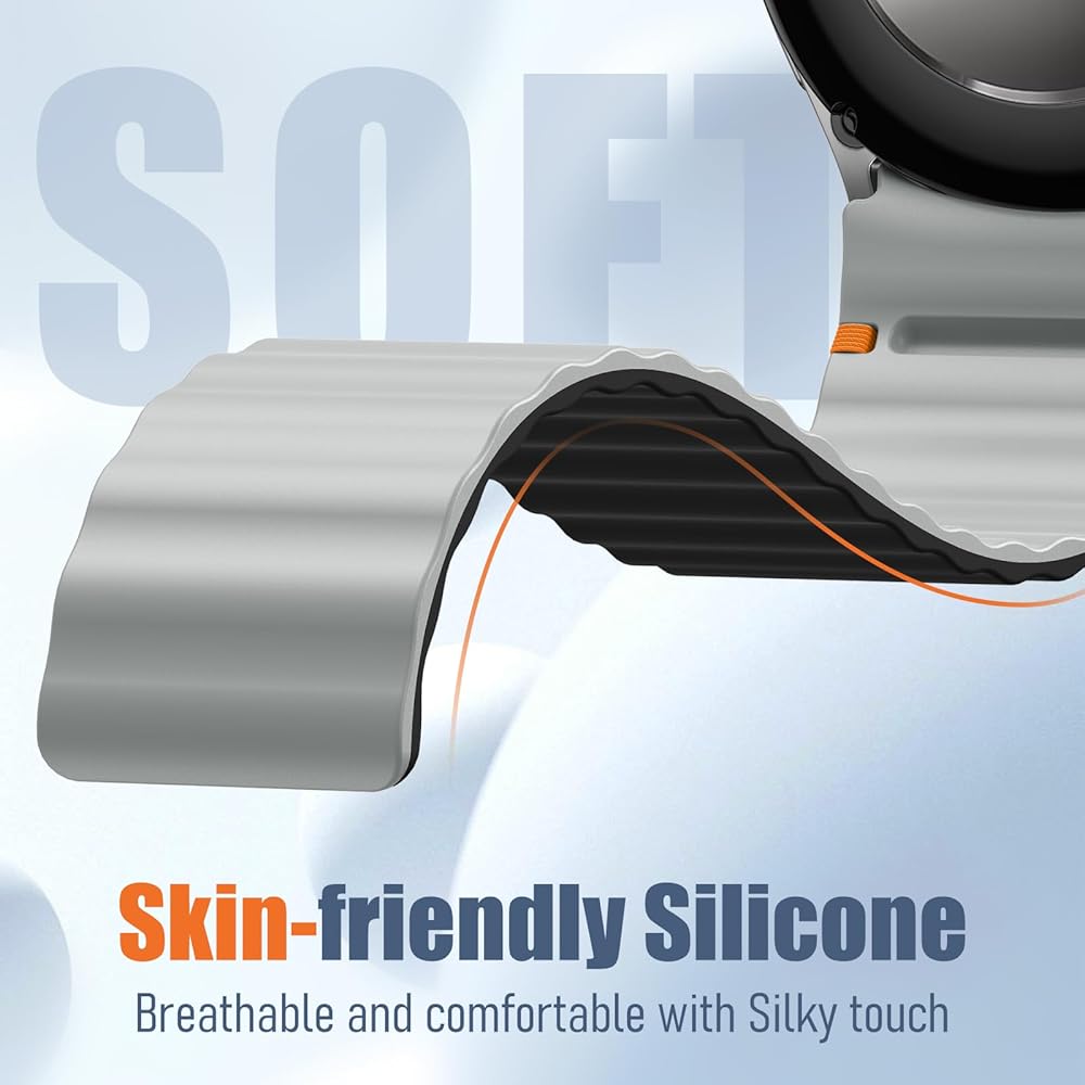 【Silicone Buckle Double Fixation】 Our silicone magnetic band ensures a secure and stable fit with its powerful magnetic attraction. Plus, the newly introduced silicone buckle, offers dual protection, enhanced magnetic grip and providing extra security for Samsung galaxy watch 7 bands, this safety loop correa para galaxy watch 7 bands keeps your for Samsung watch 7 bands firmly in place during various activities.