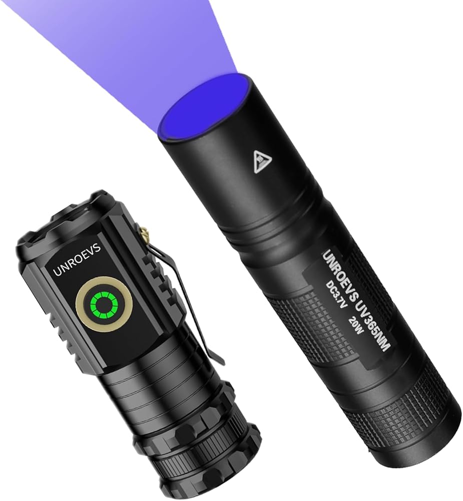 UV Flashlight Rechargeable:The ultraviolet blacklight is made of impact-resistant aluminum alloy, which is the must-have multifunctional UV lamp in your life! It's suitable for a variety of surfaces in the living room, kitchen, bathroom, bedroom, garage and car.