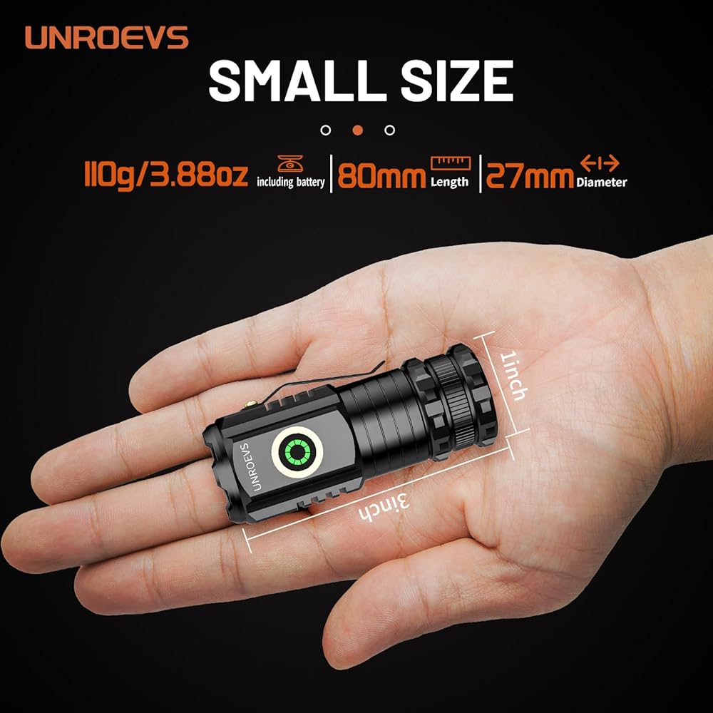 Strong Tail Magnet :UNROEVS small flashlight with a strong magnet on the bottom to firmly hold iron objects for hands-free lighting in any situation.
