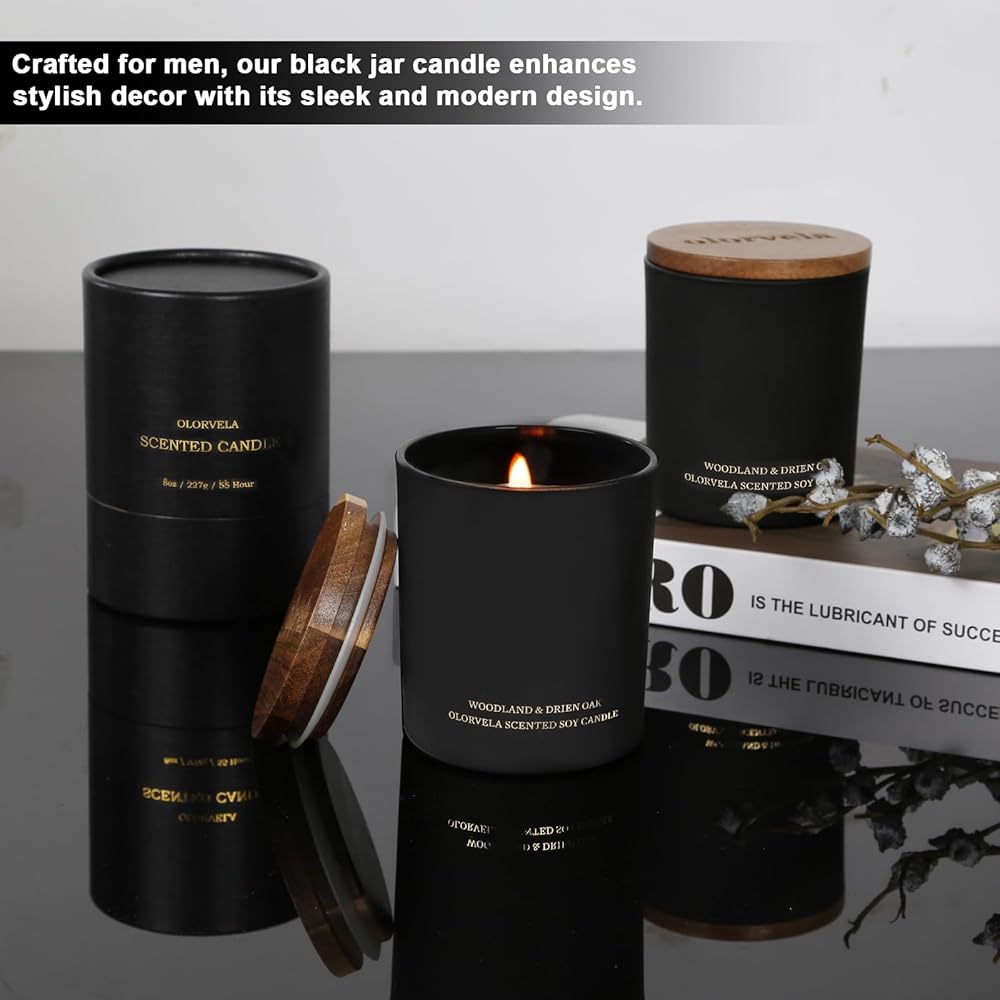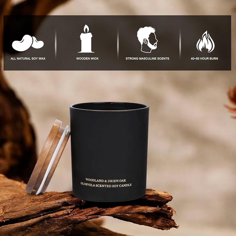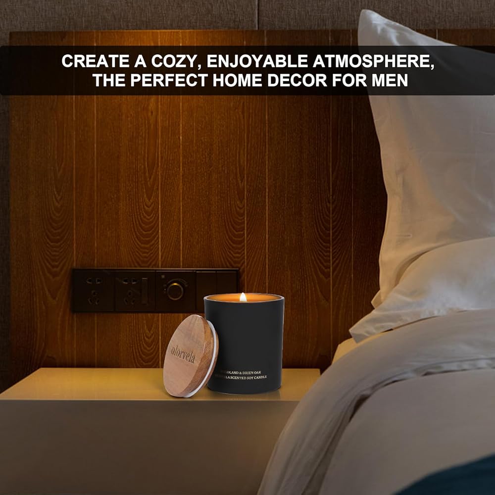 Mens Candle with Strong Fragrances - olorvela Candle for Men are poured with all natural soy wax and 8% premium fragrance oils from CPL AROMAS, more strong than most other scented candles. The sensual and calming scent releases a symphony of comforting and relaxing fragrances.