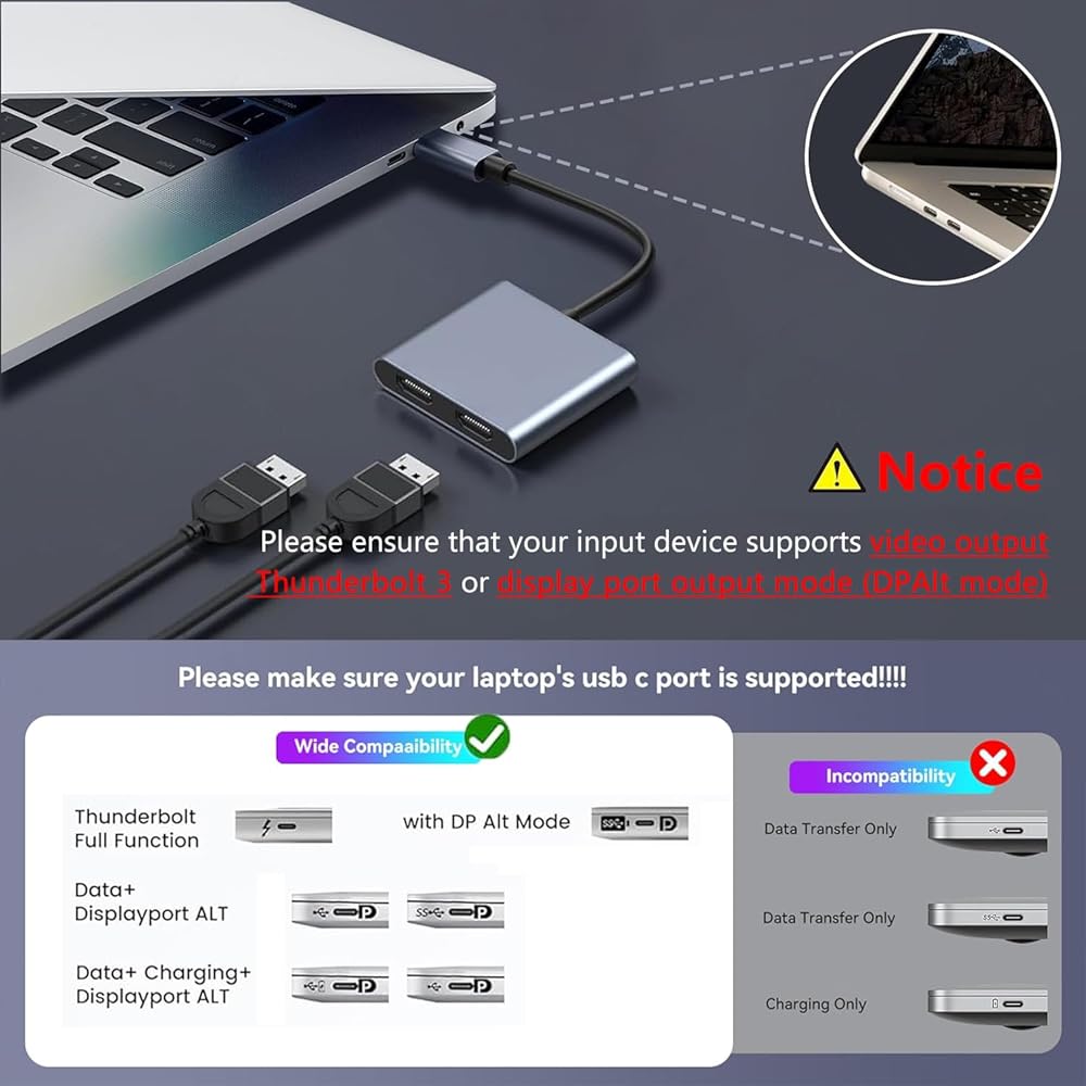 【Wide Compatibility】: Our USB-C to Dual HDMI Adapter is compatible with USB C devices on Windows, Mac OS, Android, and Linux systems. Supports MacBook, MacBook Pro, Macbook Air, iPad Pro, Surface Book, Google Chromebook Pixel, Dell XPS, HP and more USB C devices, also support Steam Deck, Rog Alloy and monitor connection for exciting gaming. (MacOS does not support MST)
