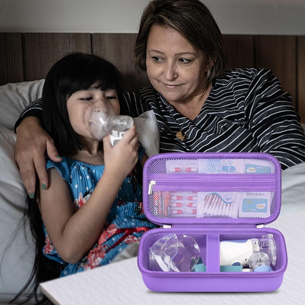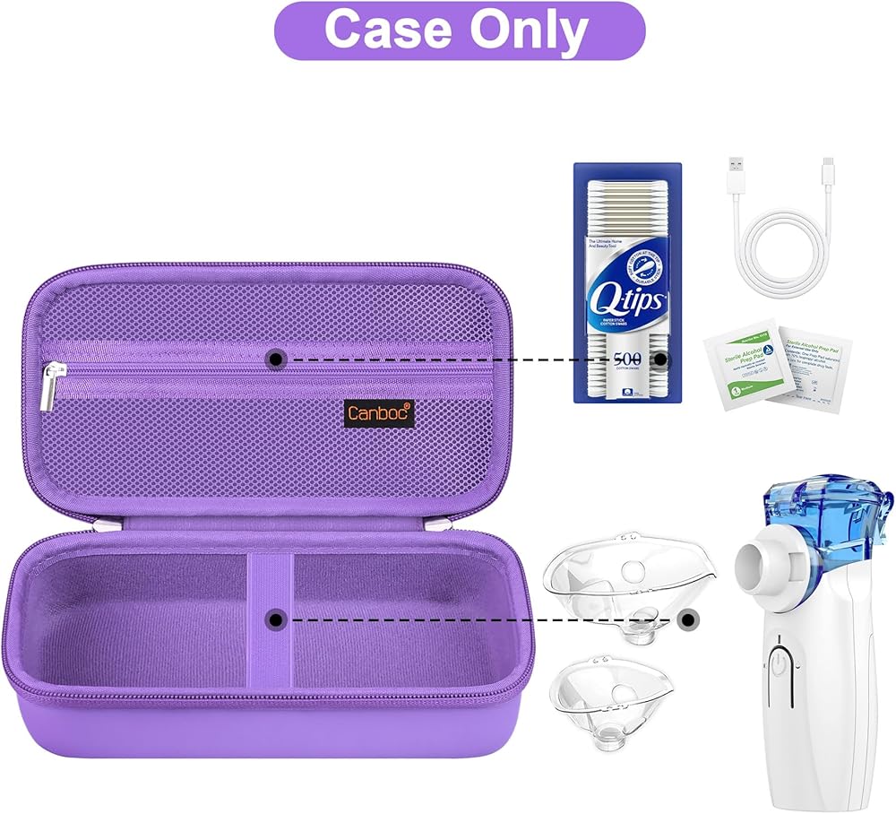 【Small and Portable】 Portable silicone handle and light weight design provide a comfortable carrying anytime and anywhere. Portable nebulizer bag is slim and lightweight, save space and can easily slide into your backpack or other bag.