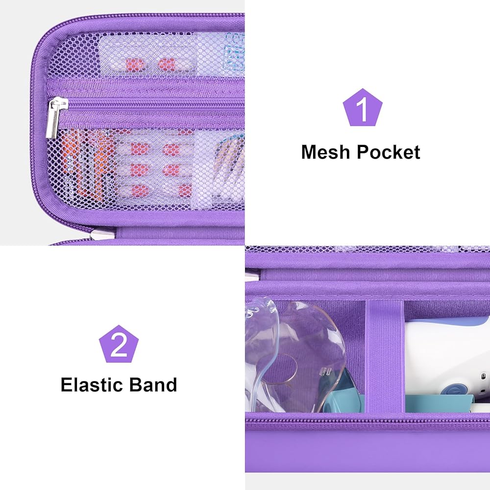 【Simple and Practical Design】 Handheld nebuliser portable case built-in elastic band can fix atomization nebulizer and prevent from accidentally falling. Double zipper gliding smoothly 360 degree opening and allows convenient access to your one-button operation nebulizer.
