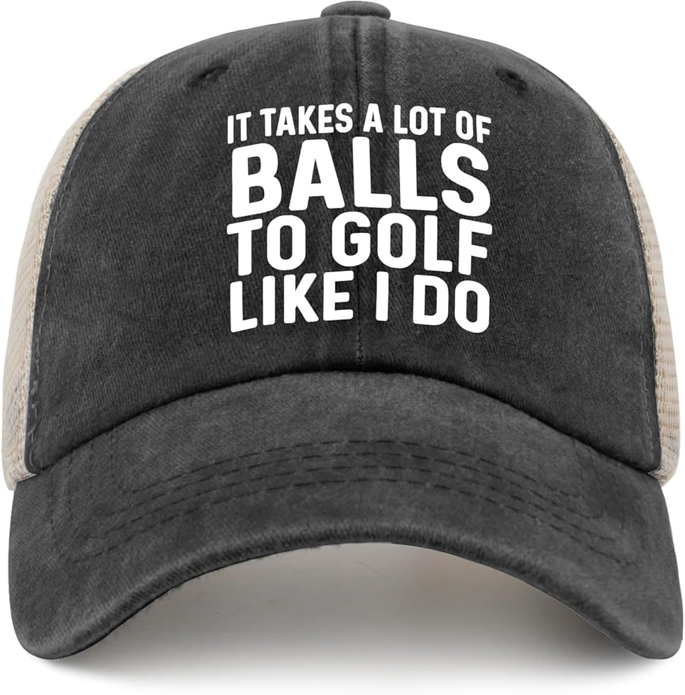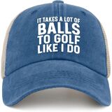 IT TAKES A LOT OF BALLS TO GOLF LIKE I DO Hat Trucker Hat Men Vintage Mesh Hat for Men and Women Breathable Hat for Summer, Funny Trucker Hat Washed Denim Hat Unisex Snapback Adjustable Hat